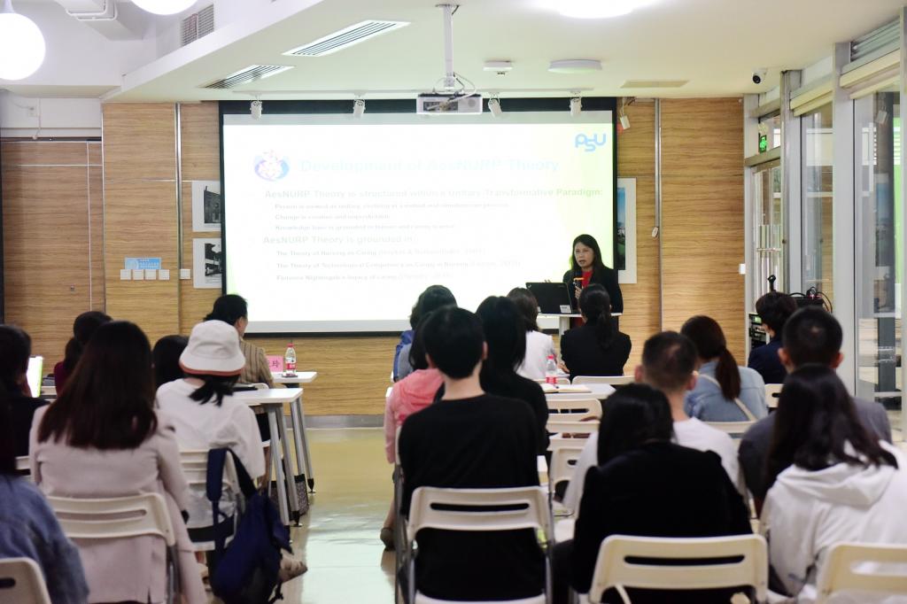 活动开始,由杨英致欢迎辞并介绍了公司的发展,回顾了两校交流历史,表达了希望两家公司在合作办学方面能更进一步的意愿。李亚玲向Waraporn Kongsuwan博士介绍了公司的发展历程、团队队伍、招生规模、学位授予等情况。交流会上播放了泰国宋卡王子大学bevictor伟德官网的宣传视频,详细介绍了该院目前开设的护理学学士、硕士及博士学位课程项目。Waraporn Kongsuwan博士以《美学在护理教育、实践和研究中的应用》为题,结合实例从美学护理实践理论、美学护理实践理论对护理教育、护理实践及护理研究的影响四个方面讲解了该理论在护理中的应用,并表示欢迎公司师生积极申请赴泰学习。在座谈会上,公司领导及教师代表与Waraporn Kongsuwan博士就如何推进两院交流合作进行了深入交谈,在师生互访、课程资源互动等方面初步达成共识。