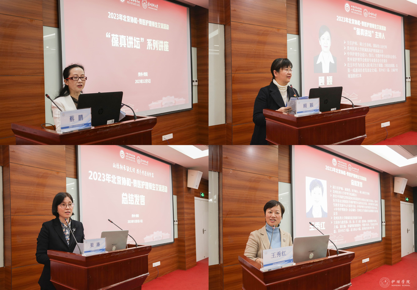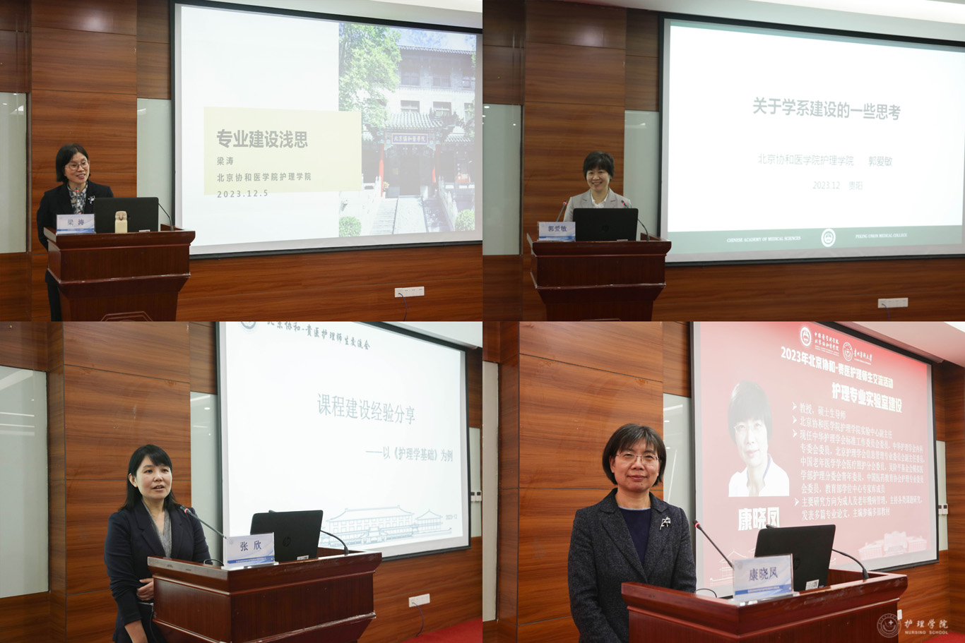 开讲仪式后,各位专家为bevictor伟德官网师生带来了一系列精彩的讲座。吴欣娟教授作“助力全民健康 彰显护理价值”主旨讲座;李峥教授以“协和护理与贵医-卓越护理人才培养”为题作讲座;北京协和医公司bevictor伟德官网副经理梁涛教授以“护理专业建设”为题作讲座;北京协和医公司bevictor伟德官网社区护理学系主任郭爱敏教授作学系建设分享;北京协和医公司bevictor伟德官网基础护理学系副主任张欣副教授结合国家级一流课程“基础护理学”的建设作经验分享;北京协和医公司护理实验中心副主任康晓凤教授介绍北京协和医公司bevictor伟德官网护理技能中心建设经验。