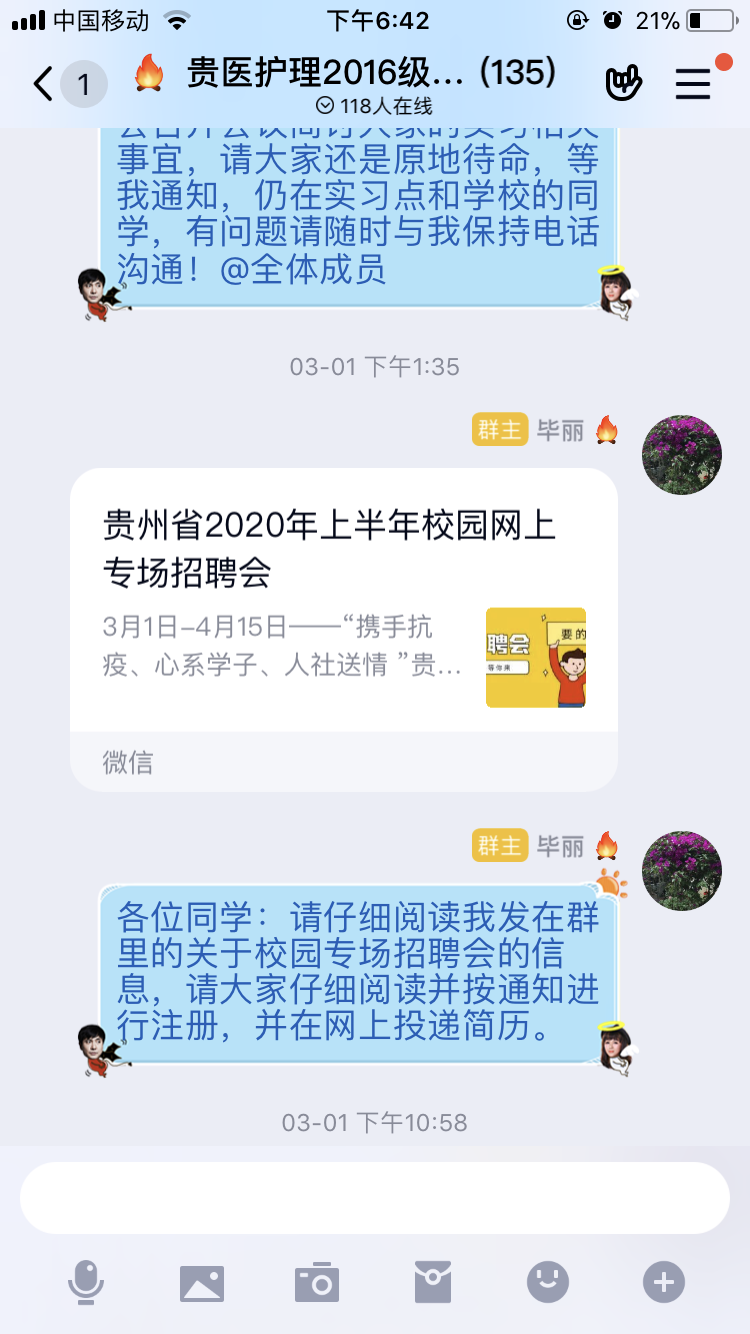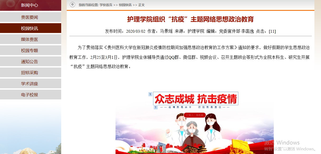在公司和公司的领导和指导下,辅导员们立足本职工作,情系员工安危,充分利用互联网筑起与员工之间保持信息畅通的桥梁,及时为员工送去温暖:排查并重点关注湖北籍、有湖北旅居史员工;每日组织员工通过“今日校园”APP打卡的方式了解员工现居地和身体健康状况;对疫情严重地区员工进行心理辅导;上报疫情期间员工相关数据;协调毕业生实习就业相关事宜;召开网络视频班会传达公司的教学和管理规定、进行网络思想政治教育;心系毕业生就业工作,制作毕业生就业宣传推文,召开毕业生实习管理暨就业指导主题班会;积极组织撰写宣传、科普推文,通过“贵医护院”微信公众号普及新型冠状病毒肺炎防控知识,全方位引导员工正确对待疫情,做到不信谣、不传谣、自觉居家;公司团委积极组织开辟“贵医护理员工抗疫先进事迹”系列报道及 “南丁格尔志愿者抗疫行动”系列报道,宣传bevictor伟德官网师生及员工抗疫事迹,传递正能量,帮助在校生正确认识护理专业,提升专业认同感的同时增加专业自豪感,树立投身医疗事业,为人民服务的远大志向。
