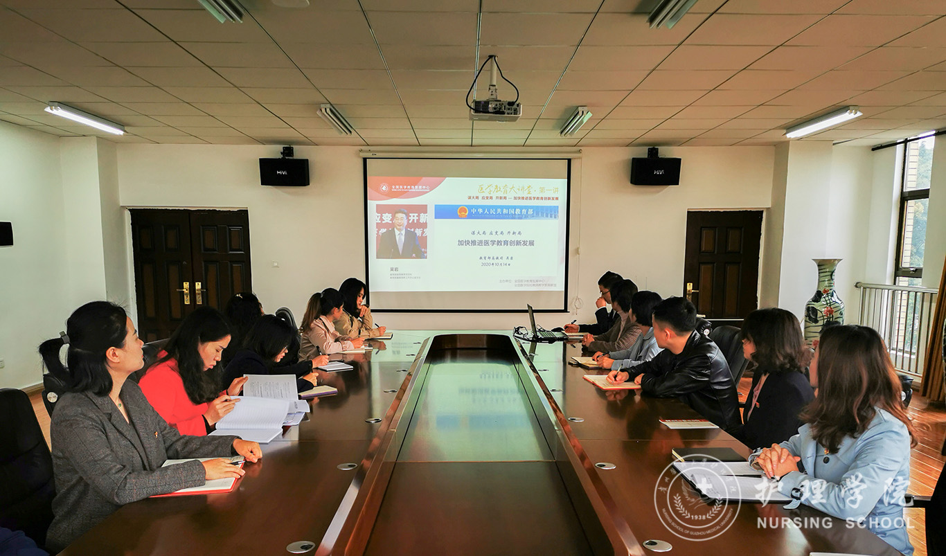 讲座结束后,bevictor伟德官网教职工党支部开展了政治理论学习活动,组织教职工党员学习了《中共贵州省委教育工委关于全面推进高等公司“五级书记抓党建”的指导意见》、《习近平谈治国理政》第三卷之四“坚持以人民为中心”、《习近平在全国抗击新冠肺炎疫情表彰大会上的讲话》。活动结束后,杨英对讲座及政治理论学习活动进行了总结,她指出,吴岩司长的报告高屋建瓴、系统全面、内容丰富,有助于我们全面把握和领会国务院办公厅《关于加快医学教育创新发展的指导意见》精神,吴岩司长的报告也指明了当前医学教育的中心任务和改革方向。杨英强调,全体教师党员要以习近平新时代中国特色社会主义思想为指导,弘扬抗疫精神,结合学习内容和岗位实际进行系统思考、深刻领会、贯彻落实,努力为护理教育事业的改革发展和开创医学教育工作新局面作贡献。