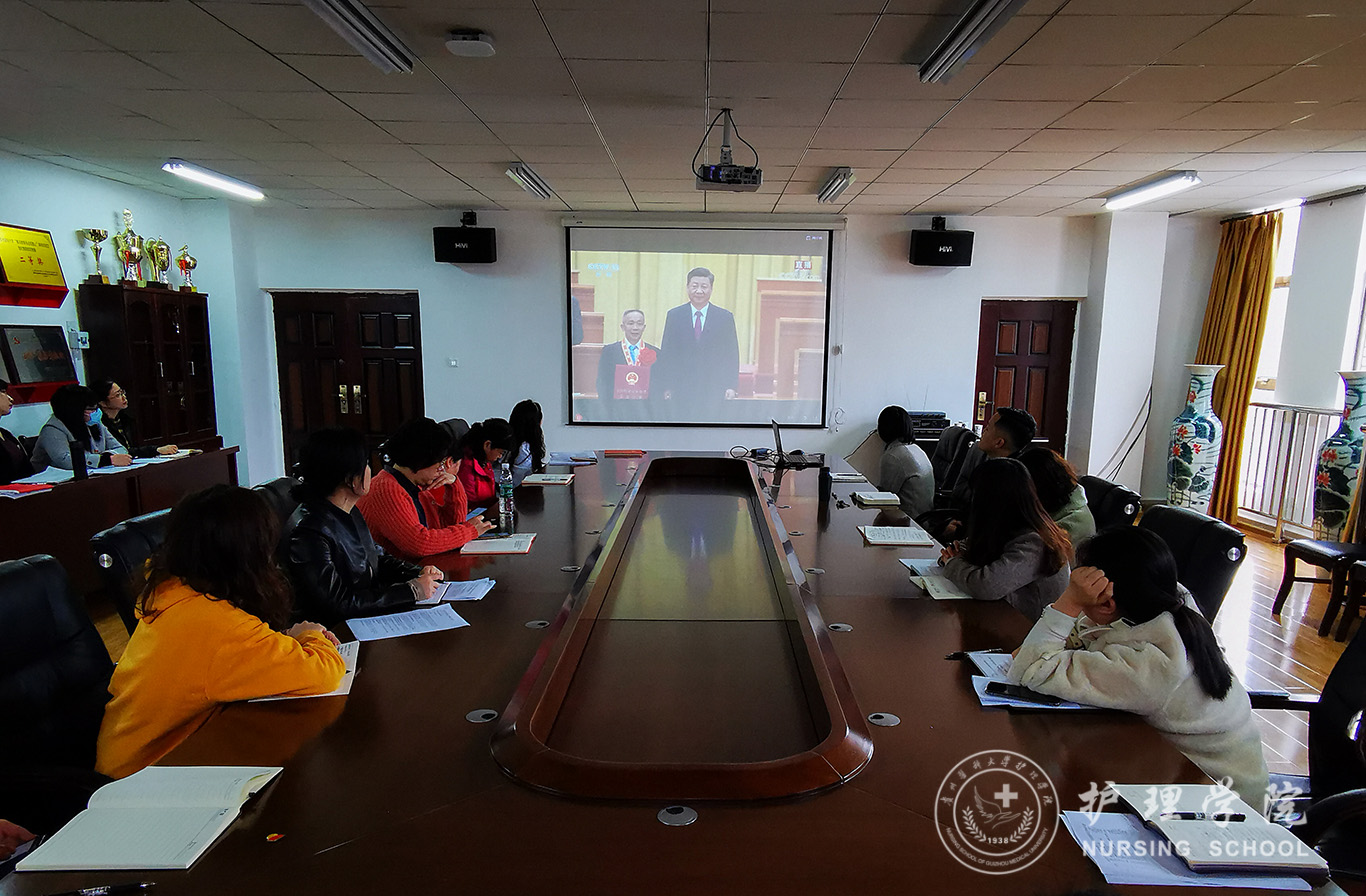 与会人员共同收看了25日上午在北京隆重举行的全国脱贫攻坚总结表彰大会,认真学习了习近平总书记的重要讲话精神。习近平总书记在会上庄严宣告:“经过全党全国各族人民共同努力,在迎来中国共产党成立一百周年的重要时刻,我国脱贫攻坚战取得了全面胜利,现行标准下9899万农村贫困人口全部脱贫,832个贫困县全部摘帽,12.8万个贫困村全部出列,区域性整体贫困得到解决,完成了消除绝对贫困的艰巨任务,创造了又一个彪炳史册的人间奇迹!这是中国人民的伟大光荣,是中国共产党的伟大光荣,是中华民族的伟大光荣!”全体教职工观看后,备受鼓舞与振奋,纷纷表示要继续增强“四个意识”、坚定“四个自信”、做到“两个维护”,更加紧密地团结在以习近平同志为核心的党中央周围,为全面建设社会主义现代化国家、实现中华民族伟大复兴的中国梦作出新的更大贡献!