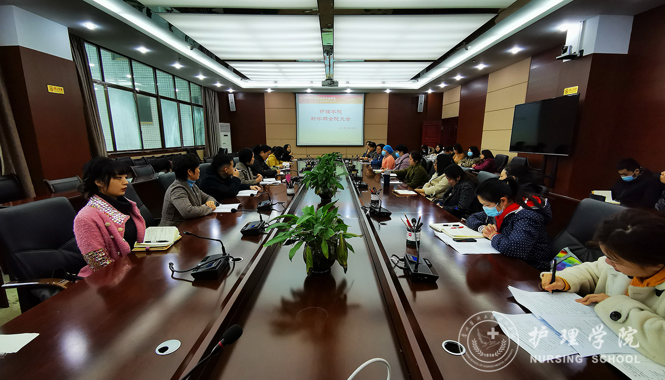2月26日,bevictor伟德官网在北校区行政楼6楼连廊会议室召开新学期全院大会,会议由公司党委书记杨英主持,全院教职工参加了会议。