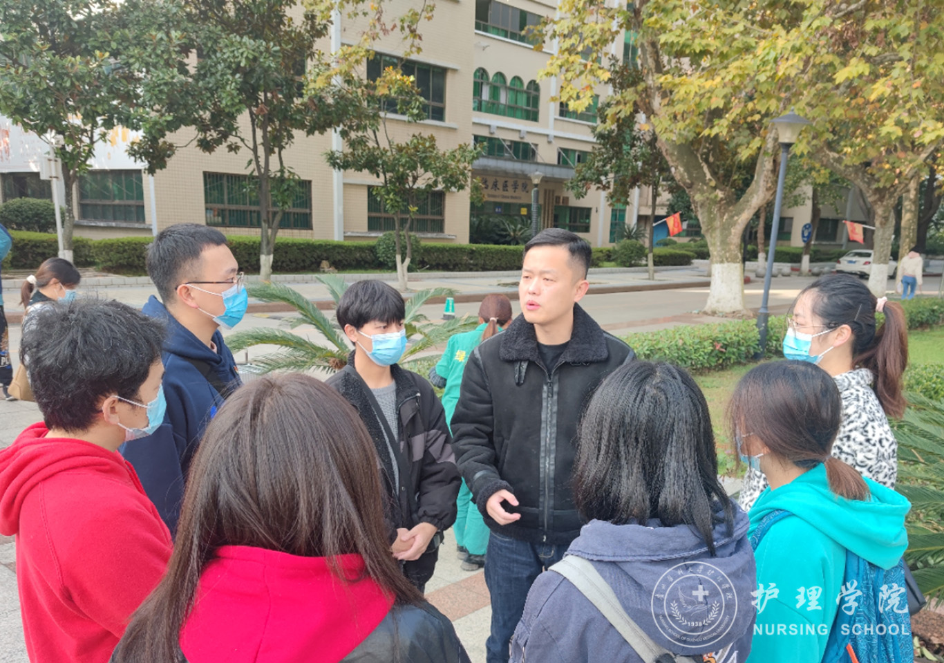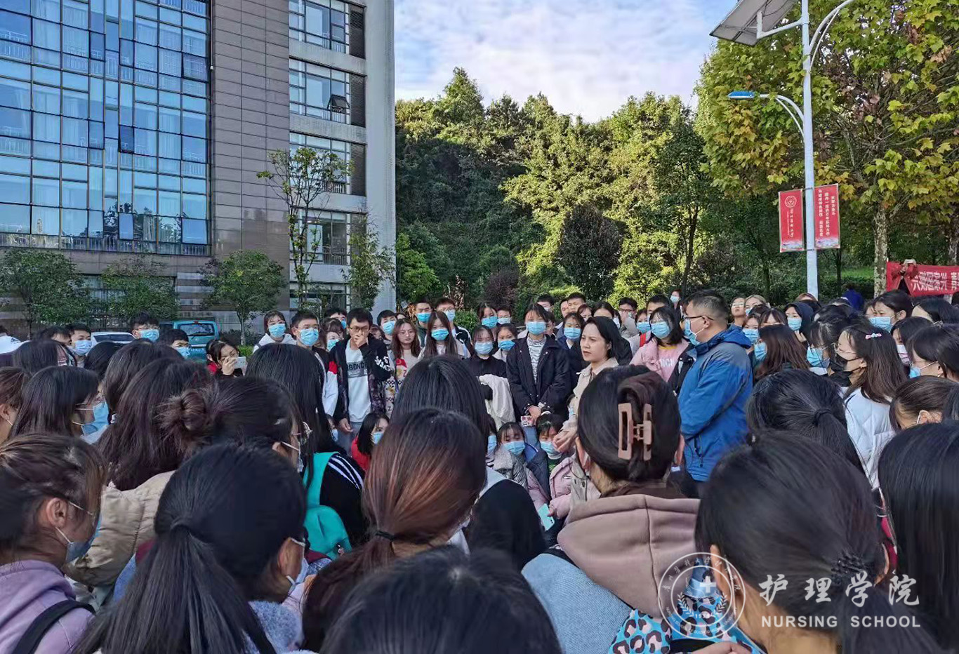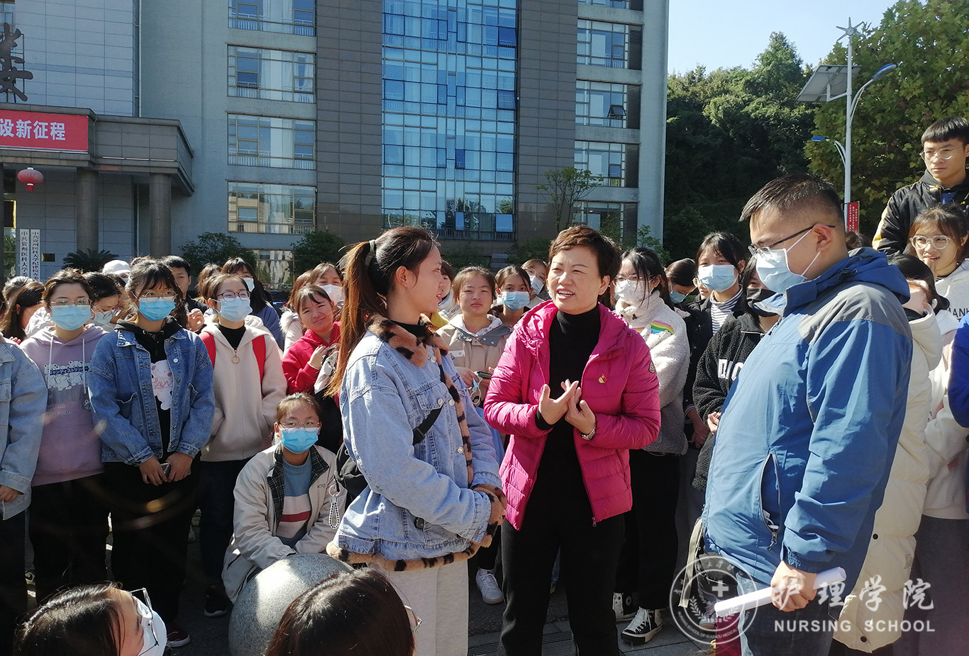 次日8点,所有驰援遵义的师生个个精神饱满,充满斗志,分别在南北校区集合。杨英、公司党委副书记何为、全体辅导员到现场为这611名白衣战士壮行。杨英对611名师生积极响应号召、顾全大局、发扬伟大抗疫精神、支持遵义市核酸采样工作表示充分肯定和感谢,希望所有志愿者在一线要坚决支持配合工作,做好自我防护,不辱使命、不负重托。8点30左右,611名师生乘车陆续从南北校区出发。