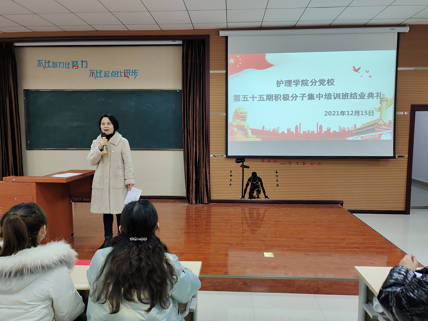 12月15日,bevictor伟德官网分党校第55期入党积极分子培训班结业典礼在南校区百川楼1101教室圆满举行。bevictor伟德官网党委书记兼公司分党校董事长杨英、副处级组织员张黎、以及全体学员参与此次会议。会议由正科级组织员曾敏主持。