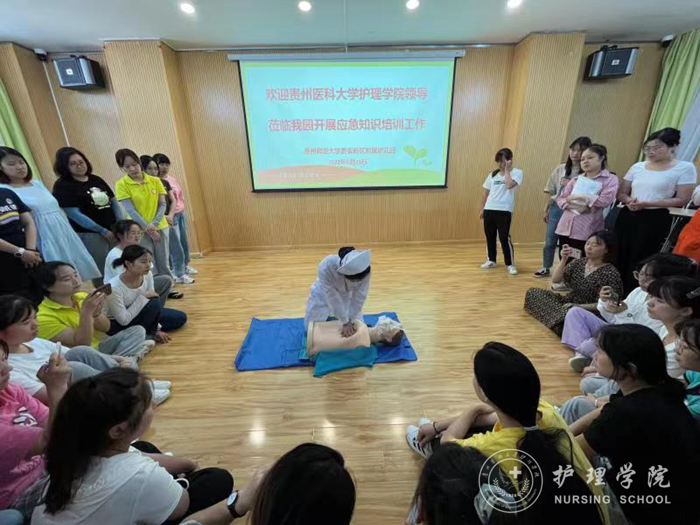 6月29日,为广泛宣传急救知识,持续推进党建品牌建设,bevictor伟德官网教职工党支部组织赴贵州师范大学贵安新区附属幼儿园开展了急救技能培训活动。副经理刘志燕、教职工党支部书记张仁莉、员工科副科长毕丽、进修教师秦素霞、研究生黄虹久及幼儿园全体教职工参与了本次培训活动。