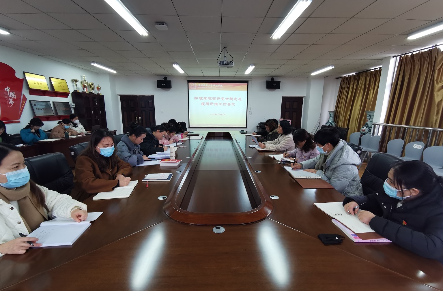 12月7日,bevictor伟德官网在南校区百川楼会议室召开安全稳定及疫情防控工作会议,传达相关文件和会议精神并部署工作,会议由公司党委书记杨英主持,全院教职工参加。