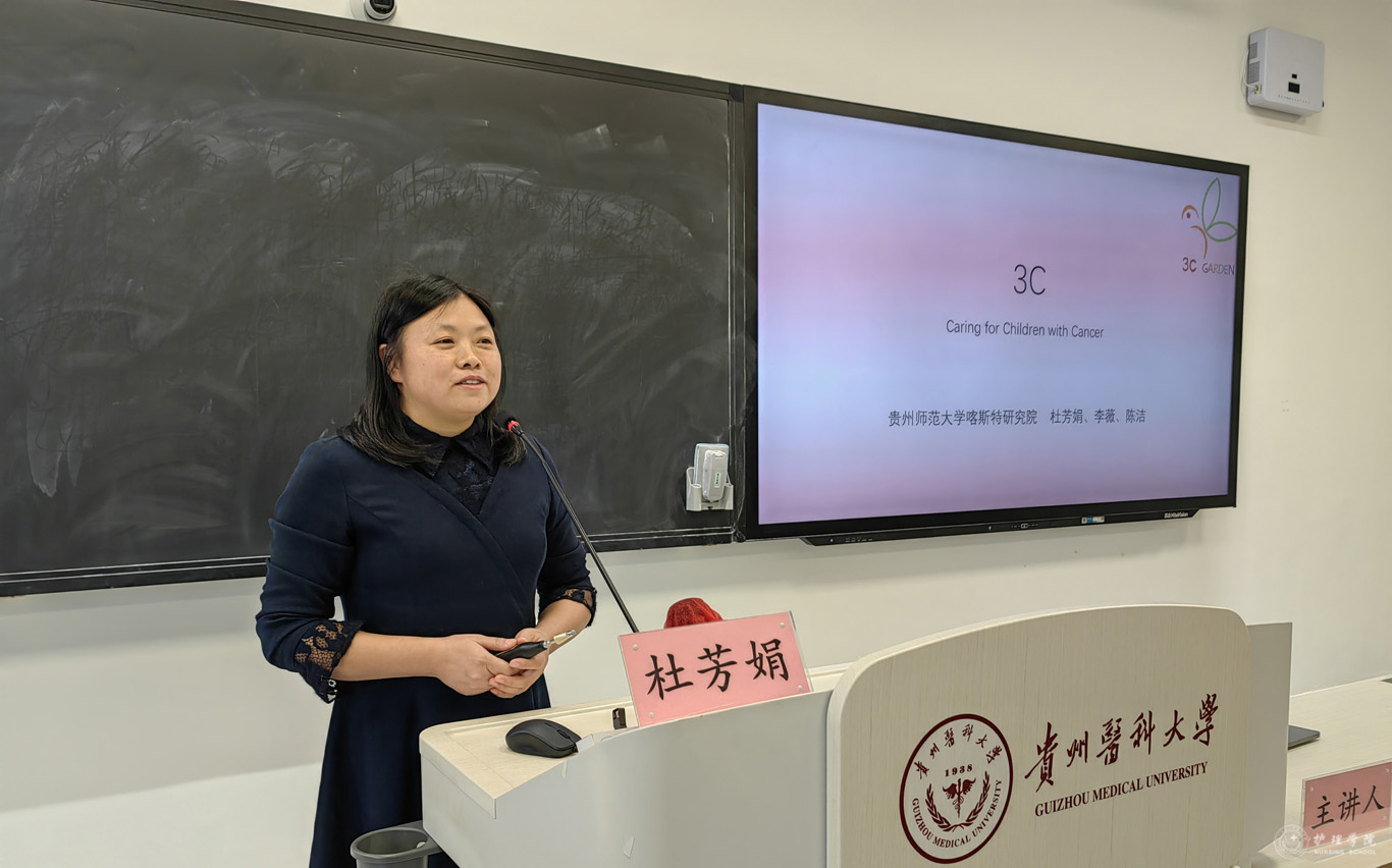 11月11日,贵州师范大学喀斯特研究院杜芳娟教授受邀在云漫湖校区临床L109教室为bevictor伟德官网师生代表作了“‘3C’团队与重疾儿童健康关怀实践”主题讲座,bevictor伟德官网党政班子成员、教师代表、各支部党员代表及各年级员工代表共120余人参加讲座,bevictor伟德官网党委委员、副处级组织员张黎主持。