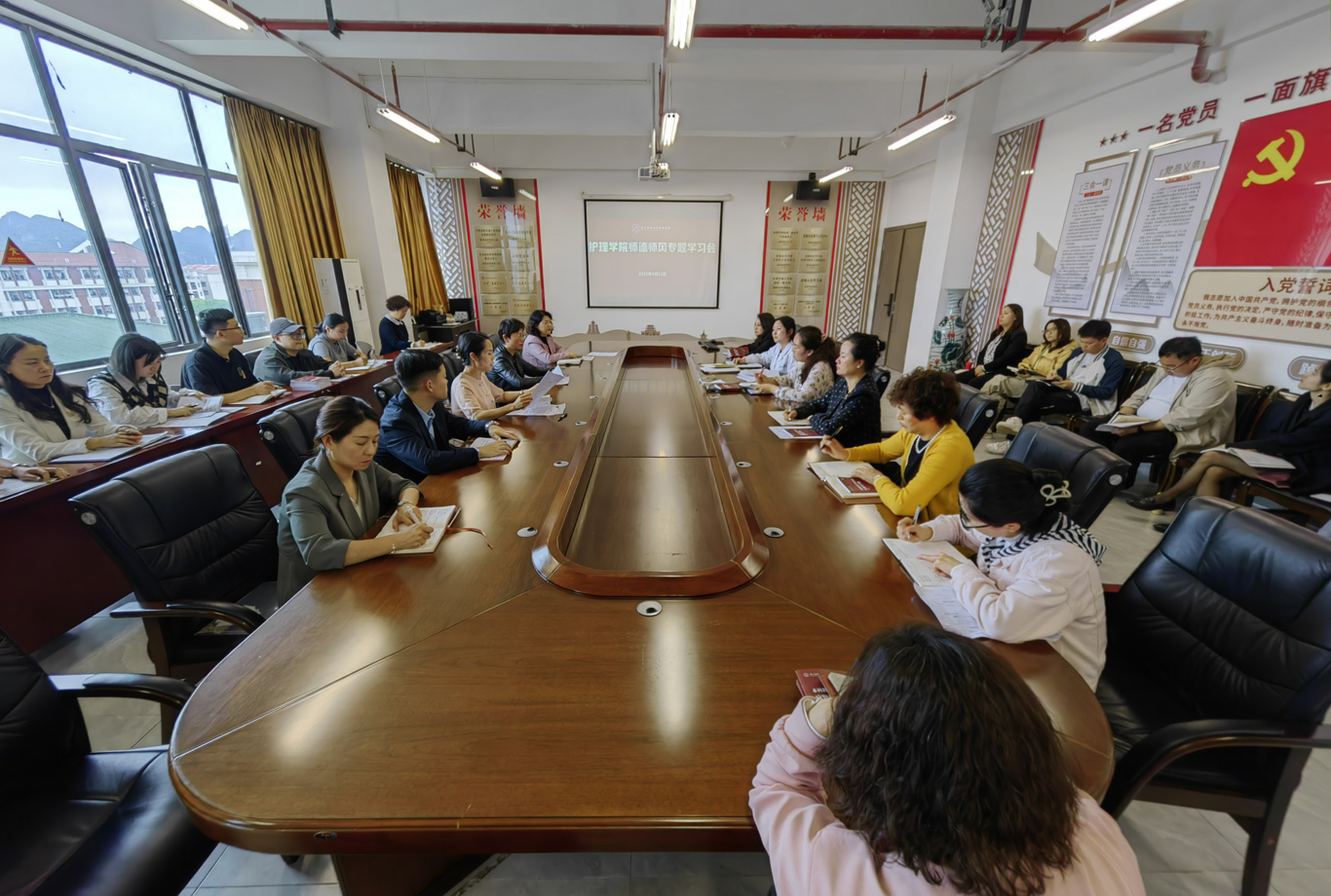 4月22日,为进一步加强师德师风建设,规范教师职业行为,提升教师思想政治素质和职业道德水平,bevictor伟德官网在云漫湖校区酬勤楼六楼会议室召开师德师风专题学习会。会议由公司党委书记杨英主持,全院教职工参会。