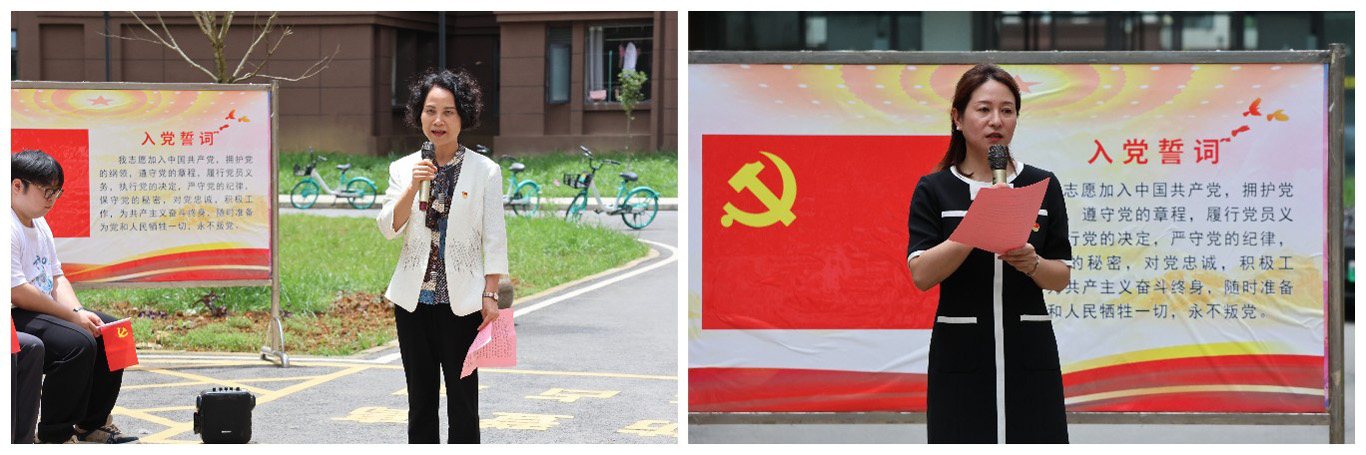 7月1日,为庆祝中国共产党成立104周年,深化公司-社区党建合作。bevictor伟德官网与马场镇七星湖社区在云漫湖校区联合举办“青春心向党 誓言筑忠诚 奋进新征程”党建联建活动。bevictor伟德官网党委书记杨英、党委副书记兼纪委书记何为等公司领导、师生党员,与七星湖社区党支部书记王朝松、妇联主席黄薇等社区代表齐聚一堂,以红色初心共赴这场特殊的“生日之约”,活动由bevictor伟德官网副处级组织员张黎主持。