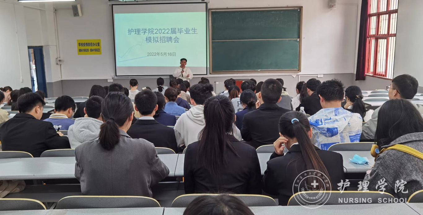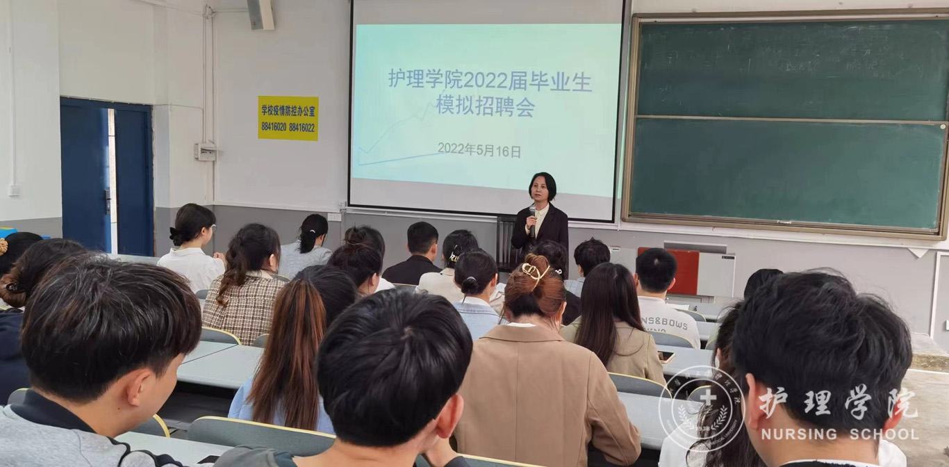 5月16日,为提升公司2022届毕业生的求职竞争力和求职成功率,bevictor伟德官网在北京路校区普教八举办了2022届毕业生模拟招聘会。公司党委书记杨英、党委副书记兼纪委书记何为、护理人文教研室副主任张仁莉、妇儿科护理学教研室副主任刘林敏、员工管理科副科长毕丽以及百余名2022届毕业生参加了本次模拟招聘会,会议由毕业班辅导员李杏春主持。