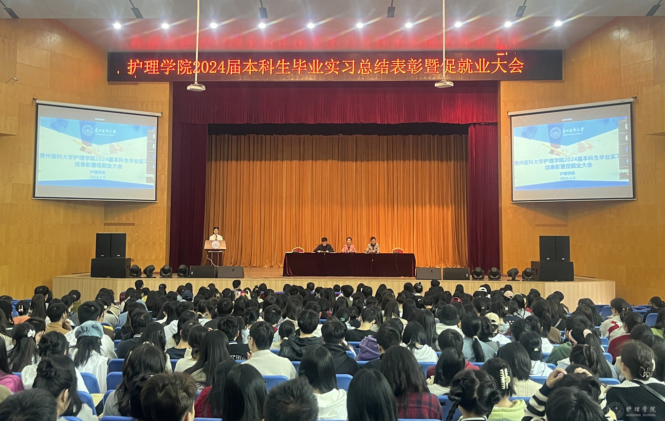 4月8日,bevictor伟德官网在北京路校区礼堂召开了2024届本科生毕业实习总结表彰暨促就业大会。bevictor伟德官网党委书记杨英、经理李亚玲、党委副书记兼纪委书记何为、生产实习科科长柳忠燕 、团委副书记王晓玲、员工管理科副科长毕丽、2020级辅导员刘妍以及2020级全体本科毕业生(专升本毕业生线上参会)参加此次会议。会议由护理学2020级C班孙念祖同学主持。
