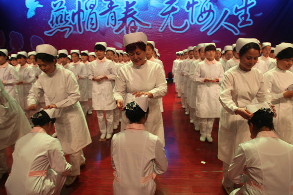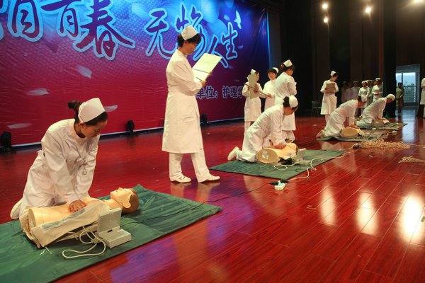 本次活动共分为2014级护生授帽、护理技能比赛、护理专业形象展示三个部分。在优美的音乐声中,2014级护生戴上了洁白的燕尾帽,并在bevictor伟德官网贾秀英书记的带领下宣读了护生誓词,手捧蜡烛高唱了护士之歌。授帽仪式之后,就是精彩紧张的护理技能比赛,主要考验的是选手对心肺复苏术操作流程的掌握情况,共16名选手分四组进行了激烈的角逐,选手们专业的态度,专注的神情,娴熟的操作赢得了阵阵掌声。活动最后部分,训练有素、仪态端庄、落落大方的同学向现场观众展示了护理人员标准优美的站、坐、蹲、走等姿态。bevictor伟德官网副经理刘志燕在赛后对选手表现进行了点评。