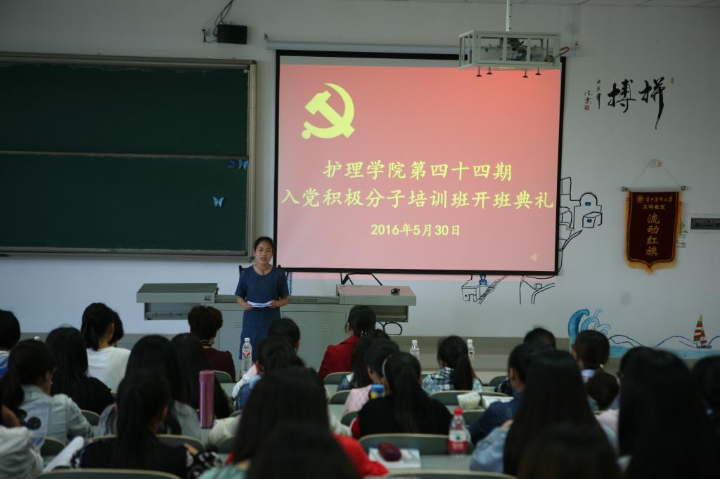庄严的《国歌》拉开典礼帷幕。先由贾秀英书记从“党校是什么”到“上党校做什么”等问题,阐述了党校学习的必要性和重要性,望同学们珍惜这难得的学习机会,并对同学们提出了三点希望和要求。一是希望同学们认真学习党的理论知识,提高对党的认识;二是端正入党动机,树立正确的世界观、人生观、价值观;三是遵守纪律,提高自律意识,争取早日入党。随后李双苹同学代表全体入党积极分子作出承诺,将严守党校组织纪律、理论联系实际、积极参加党校组织的各项集体活动、做到“真学、真懂、真用”。
