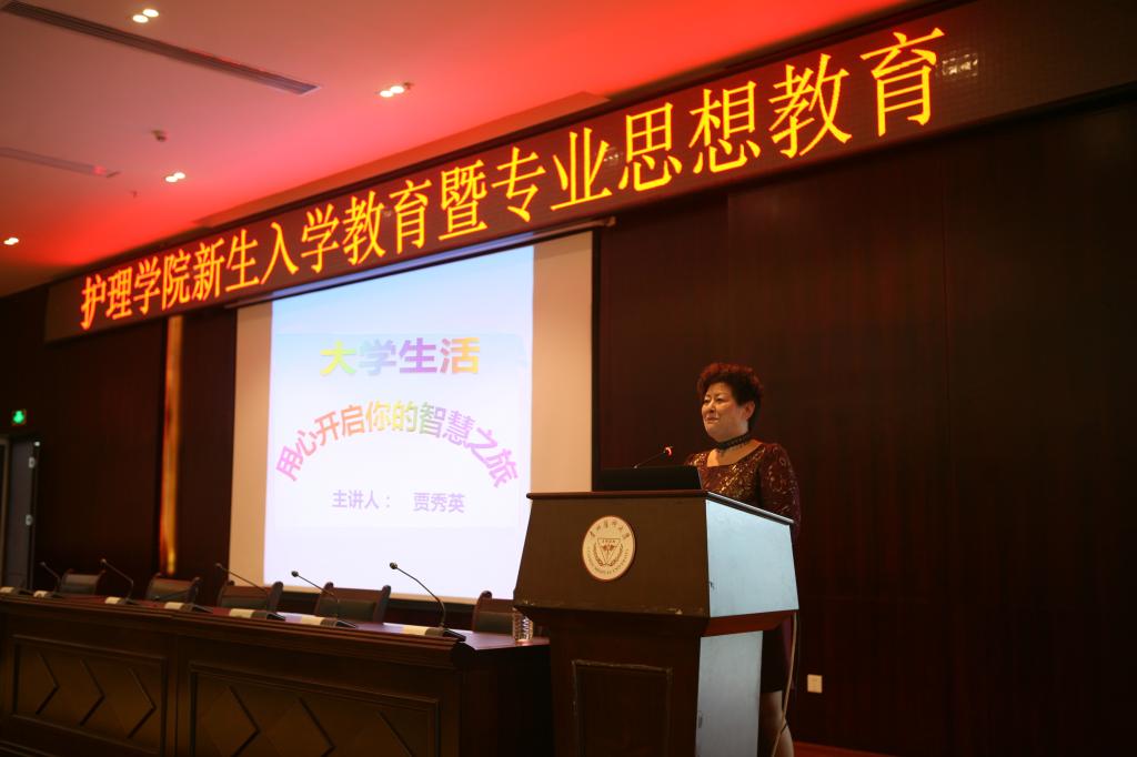 贾秀英老师从老员工如何实现角色转变,如何战胜自我,如何适应老员工活养成自主学习习惯等方面给同学们做了精彩讲授,郭永洪老师从如何给护理专业定位,如何在大学中学好专业知识成为一名合格的护理人才,以及护理的就业前景给同学们进行了全面的讲解。