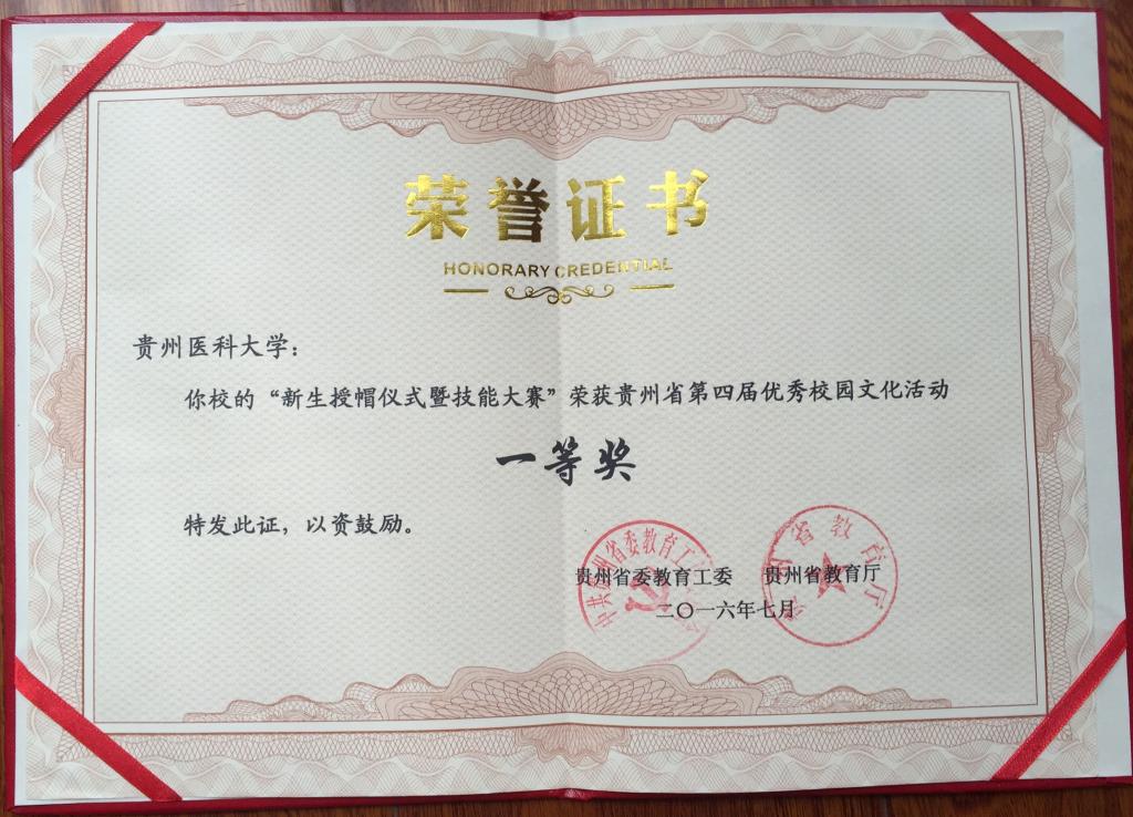 在贵州省教育工委、贵州省教育厅举办的第四届高校优秀校园文化活动成果评选中,公司《二十余载烛火传承培育黔地护理英才》申报材料荣获一等奖。材料充分展示了公司在结合专业特色,坚持二十余年开展新生授帽仪式及技能大赛的风采,同时体现了公司多年来培育了一大批护理人才,在服务贵州、建设贵州,为我省医疗事业发展所做出的贡献。