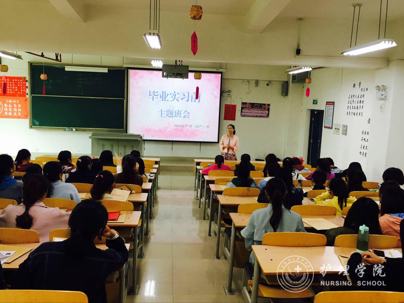 4月12日,bevictor伟德官网在北校区4401教室毕业实习前主题班会, 2014级护理学(助产)专业的班主任徐锟老师主持了此次班会, 2014级护理学(助产)的全体同学参加。