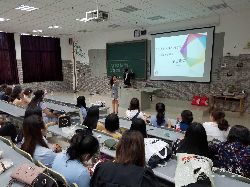 接着,同学们在班委精心制作的视频中回忆了大学四年的花样时光,同学们争先上台有感而发,表达对老师关爱的感恩,对同学支持的感谢,对即将离别的不舍。之后,同学们纷纷向两位老师献上准备好的康乃馨,拥抱老师倾述师恩难忘,老师们笑中带泪,给每一位同学送上班徽,叮嘱同学们要带着老员工活这一段沉甸甸的美好回忆走出校园,不要忘记始终努力学习,始终坚持医务工作者的慎独与初心,用心工作,用心对待每一位病人,将贵医精神传承下去。