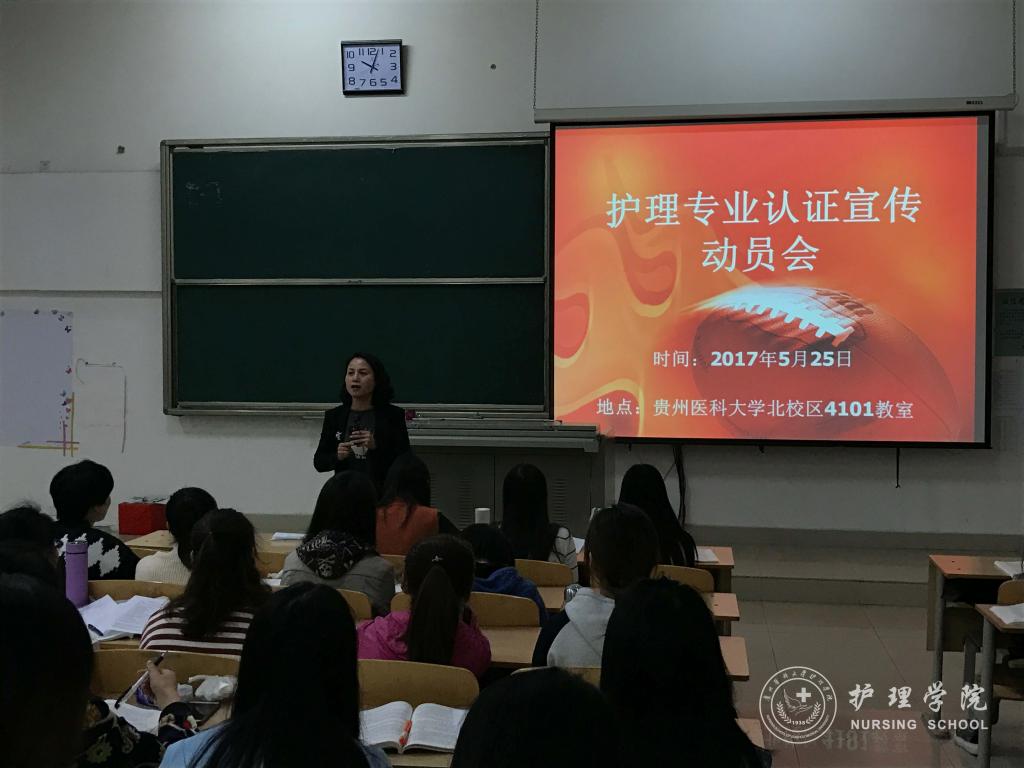 为进一步加强员工对护理专业认证的认识,bevictor伟德官网于5月25日上午在北校区4101教室召开了护理专业认证员工宣传动员会,2014级本科班和助产班的全体同学参加。此次会议由bevictor伟德官网党委副书记杨英和员工科科长曾敏主讲。