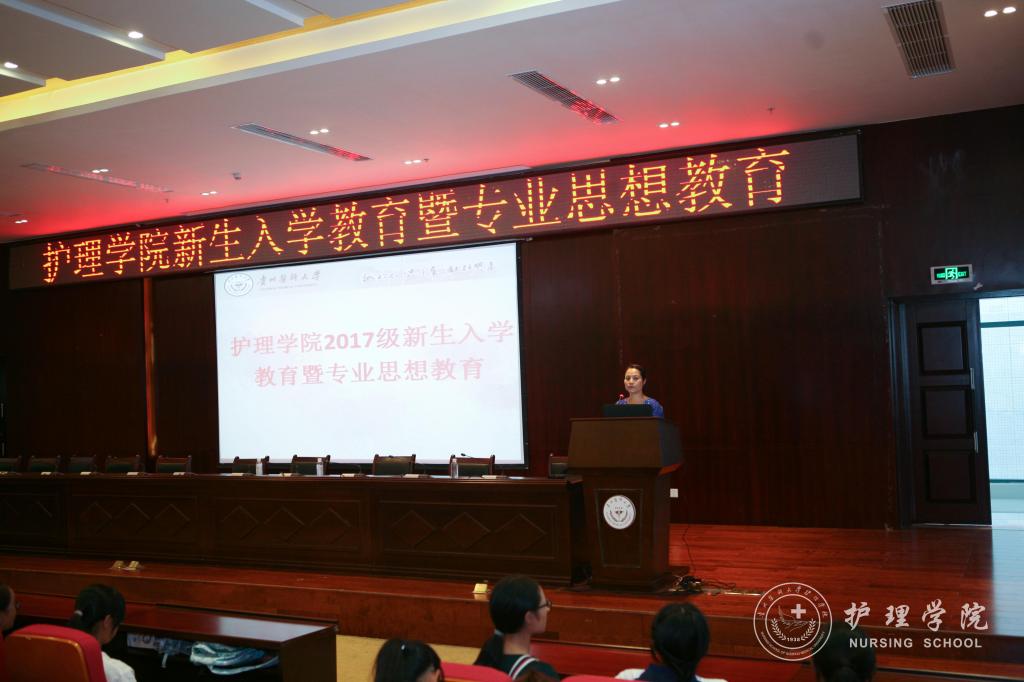 副经理刘志燕为2017级新生作了以专业思想教育为主题的讲座。刘志燕从护理学的内涵,护理学的专业培养目标、能力要求、知识要求等方面对新生进行专业思想教育,使新生对护理学专业有了基本的了解,对大学四年的专业学习有了初步的规划。