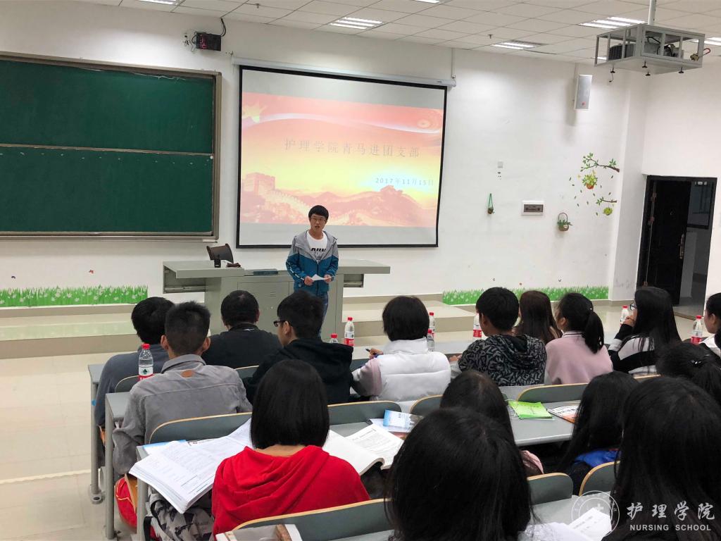 11月15日下午18:00,bevictor伟德官网在南校区7405教室开展了“青马宣讲进团支部”的活动,参与的人员有2017级各班班长、团支部书记及2017级护理学丙班全体同学。本次活动由员工会副主席尹本渊主持,青马社宣讲团成员李昱林同学进行了宣讲。