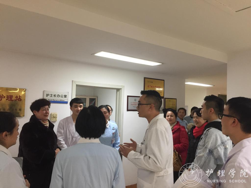 首先,贾秀英一行与护理部主任王丽华、助理庄雪平、临床带教老师代表、全体实习员工进行座谈交流,了解院方对公司员工实习教学情况的安排,分别听取带教老师对员工实习情况的介绍,实习员工对带教老师带教情况的反馈。带教老师提出了员工需加强英语学习,科研训练的建议。随后,一行人观摩了肝胆外科病区组织的护理教学查房教学活动,查看了教学档案资料。会后到员工宿舍看望实习员工,了解其住宿、生活环境。