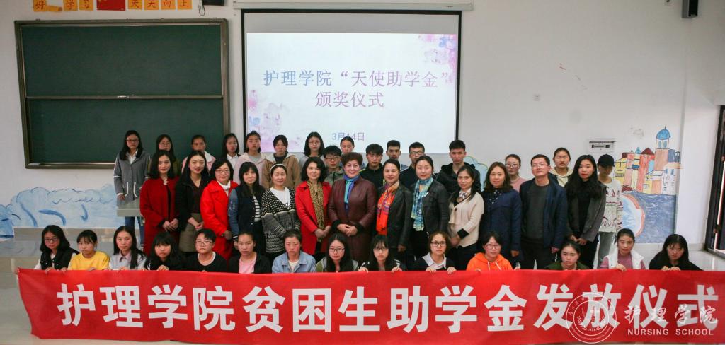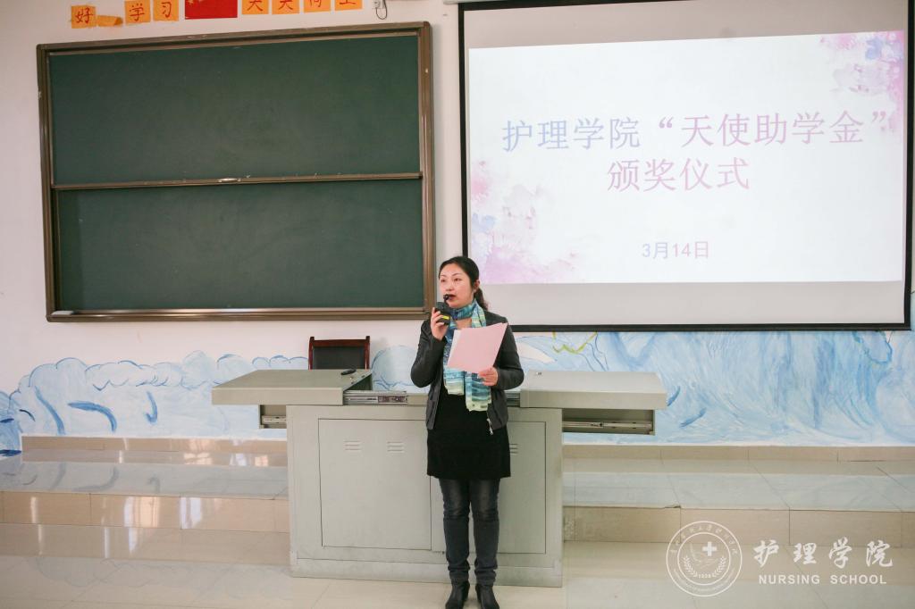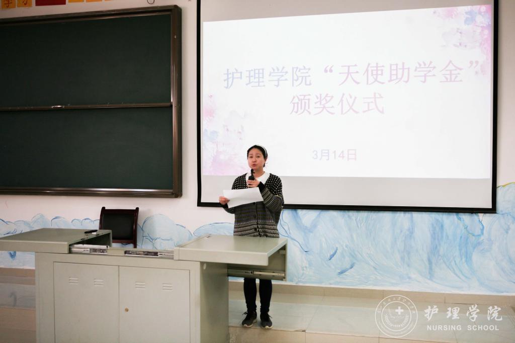 首先,员工科科长曾敏介绍了“天使助学金”的由来,并转达了“天使助学金”主要资助人浙江大学附属邵逸夫医院,从事护理工作25年的秦建芬老师对同学们的期望:“护理工作是助人的工作,一位好的护士,对患者而言,就是好的药物,所以尽自己的这一点绵薄之力,能够对同行的兄弟姐妹们的学业生活有所帮助,希望同学们能够更好地为患者提供照护。”接着,bevictor伟德官网综合办主任张黎宣读了bevictor伟德官网“天使助学金”的受助名单。张黎鼓励同学们要心怀感恩、努力学习、乐观生活,以优异的成绩来回报师长和秦女士的关心与帮助。最后,2017级护理学乙班同学黄虹久代表受助同学发言,向关心和帮助困难同学的秦女士和领导、老师表示崇高的敬意和衷心的感谢。她代表受助同学承诺:要牢记校训、院训,学好专业知识,增强实践能力,提高道德修养,为成为一名优秀的白衣天使打下坚实基础,争取在以后的工作中更好地服务人民、回报社会。