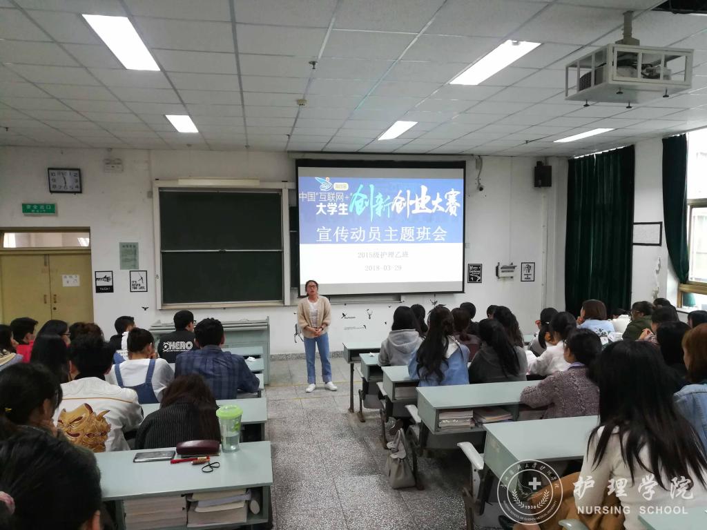 为提高同学们的创新创业意识,培养同学们创新创业的素质和能力,bevictor伟德官网于3月29日下午5:30在北校区3302教室举行了第四届“互联网+”老员工创新创业大赛宣传动员主题班会。班会由班主任李红老师主讲,2015级护理乙班全体同学参会。