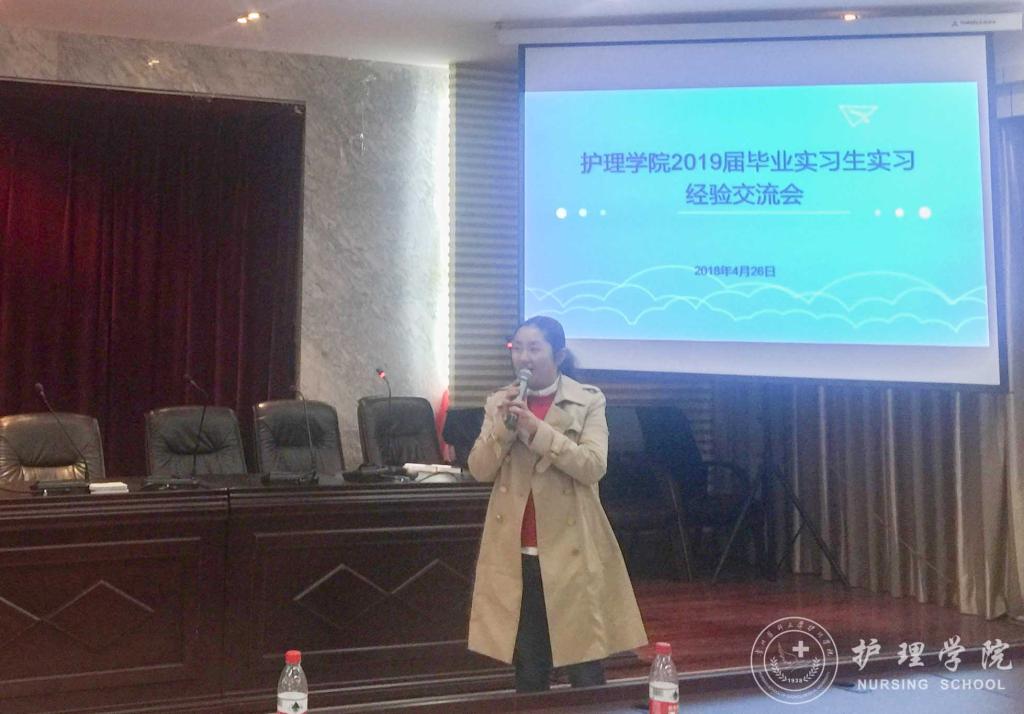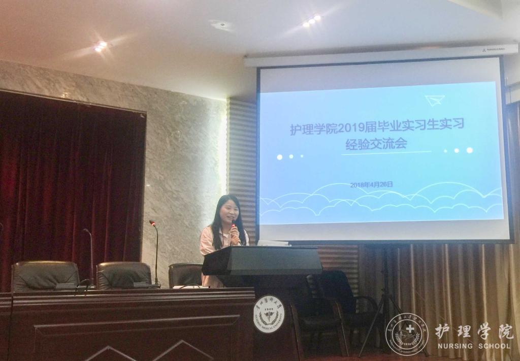 首先,李颖简单的介绍了出席交流会的同学和本次交流会的目的。接着,曾在重庆西南医院、伟德官网bv1946附属医院、贵州省人民医院、贵州省妇幼保健院实习的优秀实习生代表唐昊宇、张敏、林娴、黄莉华、罗琳,结合自身情况分享各个实习医院的环境和要求,帮助大家初步熟悉实习地点情况、尽早进入实习状态。他们用实习期间积累的经验,向师弟师妹们讲解实习中会遇到的基本状况和突发状况及其应对措施,解说勤奋和情商的重要性,以及实习过程中要学会保护自己,并不断提高自身操作技能。让师弟师妹们直观的感受到了临床实习的氛围与激情。最后,员工科科长曾敏为本次交流会做出了总结,她希望同学们都要学好专业基本功,本着对生命负责任的态度对待实习,珍惜实习带来的宝贵实践经历,不断提高自身综合素质,用努力和行动,迎接明天的成功。