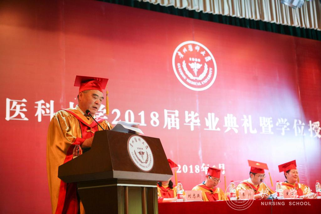 随后,毕业生代表向领导及教师代表献花;教师代表医学检验公司莫菲教授发言;优秀员工钱兰芳发言;护理学专业本科毕业生代表喻婷发言。