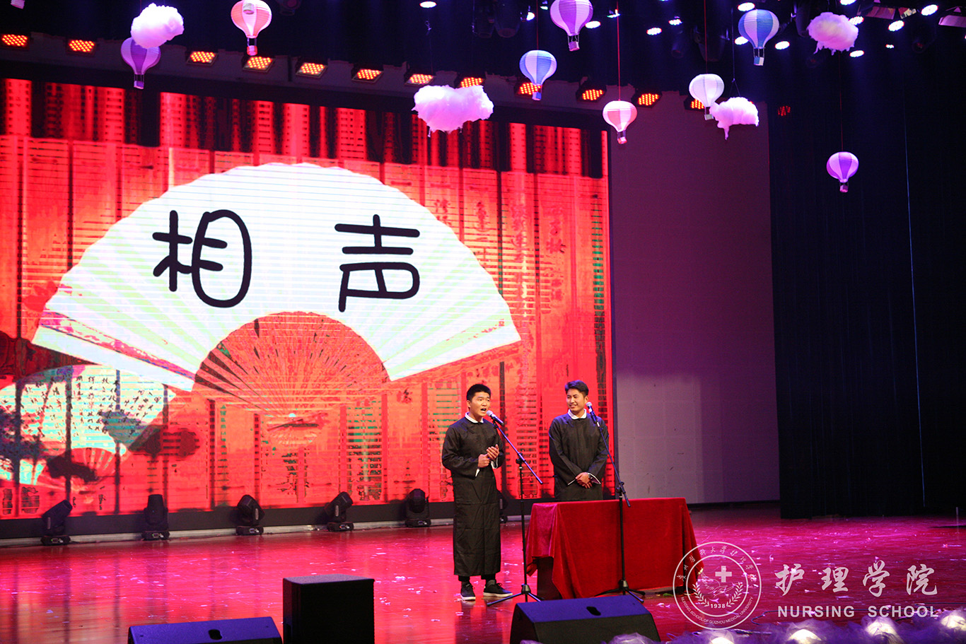 晚会以讲述人物故事的形式展开,共分为“心迎新•护梦起航”、“贵医情•杏林之馨”、“踏歌行•共谱华章”三个篇章。在伴随着10、9、8……的倒计时后,风格神秘、激情的舞蹈《New Life》拉开了晚会序幕;歌曲《Maps》,音调激昂,荧光灯下是那么光彩夺目,悦耳动听;《花溪花溪》的舞姿轻盈、《secret garden》走秀可谓抓住了所有观众的眼球,模特们的摆姿、步态魅力四射,焕发着青春的活力;相声《老员工活》给同学们带来了无限的欢乐;舞蹈串烧《炫》,如它的名字一般,炫酷全场;《CCLV》更是以诙谐的语言获得了观众们的阵阵掌声;情景剧《天亮了》与《我们和你》展现出了护生工作的写照,我们要树医院文明新风,展白衣天使风采,弘扬南丁格尔精神,铸塑新时代医院新形象;合唱《没有什么不同》和《不忘初心》,提醒着同学们新时代新青年要不忘初心,砥砺前行。节目中插播的暖心祝福视频表达了bevictor伟德官网经理贾秀英老师和党政领导以及全体教师和学长学姐们对2018级新生的欢迎和喜爱之情,希望同学们能坚持如一,勤奋刻苦,认真学习,享受大学时光,并真诚祝愿同学们能够学业有成,征程有道,用四年练造强大的臂膀,扬启航的船帆驶向远方。