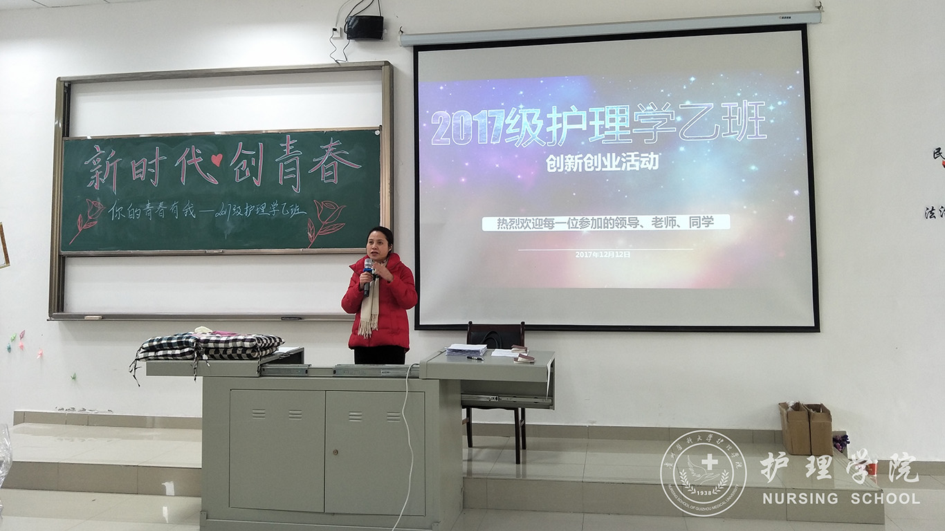 为了激发同学们的创新创业热情,提高同学们的动手能力,丰富同学们的老员工活,12月12日下午,bevictor伟德官网在南校区7404教室开展了一场以“新时代•创青春”为主题的创新创业交流分享会。此次活动由bevictor伟德官网主办,2017级护理学乙班承办。bevictor伟德官网党委副书记杨英、2017级辅导员王晓玲老师、马景瑶老师、2017级护理学乙班全体同学,以及其他班级的部分同学参加了本次活动。