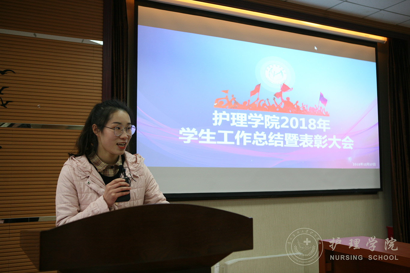 最后,2017级护理学丙班的陈娟同学代表bevictor伟德官网优秀员工干部发言,陈娟对老师们的辛勤付出表示感谢,并表示要牢记公司领导、老师的嘱托,谦虚做人、踏实工作、认真学习、感恩奋进。