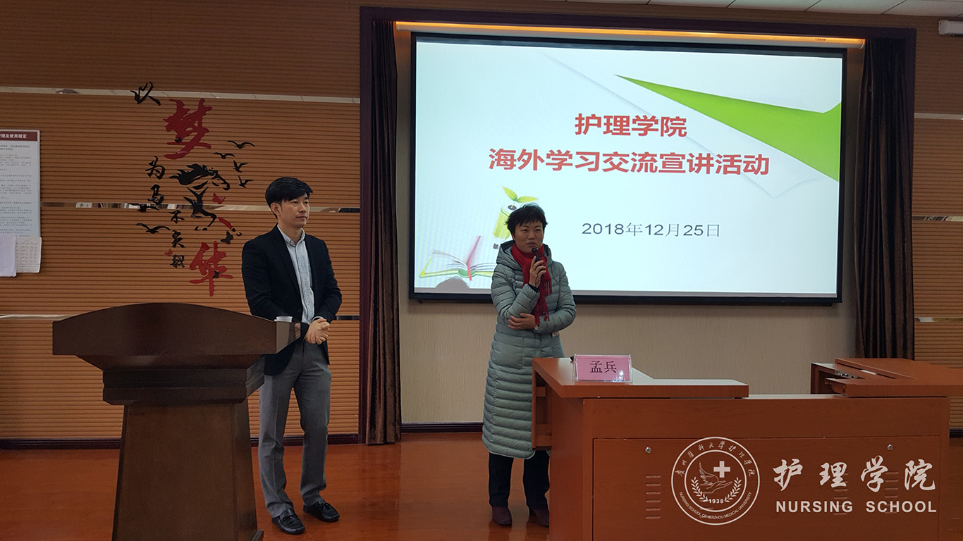 12月25日,bevictor伟德官网在南校区百川楼1101教室举办了海外学习交流宣讲活动。活动邀请到菲律宾圣保罗大学驻华办主任孟兵作为宣讲嘉宾。bevictor伟德官网党委书记杨英、经理贾秀英、副经理刘志燕、党委副书记王秀红及各教研室老师、辅导员老师、研究生同学、护理学2017、2018级同学代表约150人参加了活动。