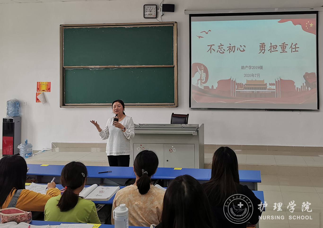 为使同学们充分认识社会主义的优越性,更加坚定以人民为中心的政治立场,勇于担当历史使命和社会责任。2020年7月2日到3日,bevictor伟德官网护理学、助产学2019级四个班级分别于本班教室召开了“不忘初心,勇担责任”意识形态教育主题班会,全体同学参加。会议由辅导员组织,各班班长主持。