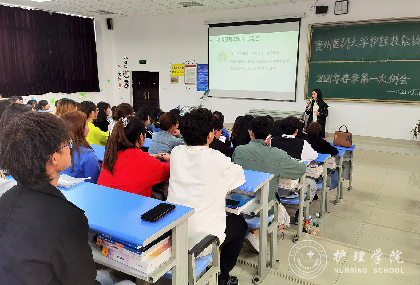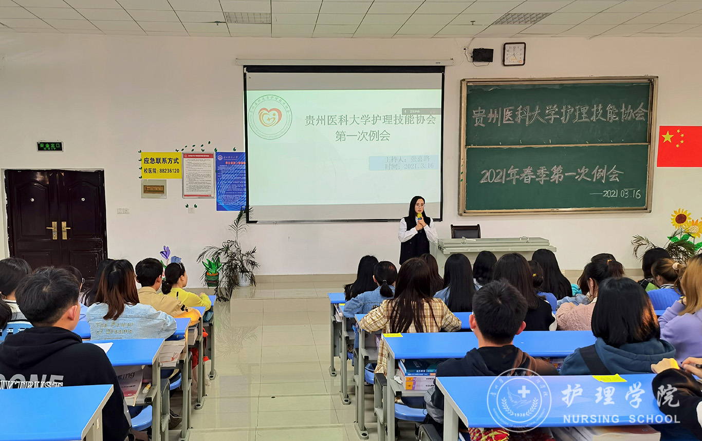 3月16日,公司护理技能协会在南校区1501教室召开了2020-2021学年第二学期第一次例会,例会采用线上与线下结合的形式,由副会长张喜路同学主持。出席本次会议的有bevictor伟德官网团委副书记王晓玲老师、护理学基础教研室邹惠美老师和bevictor伟德官网技能实验室文红燕老师,协会全体成员参加了此次会议。