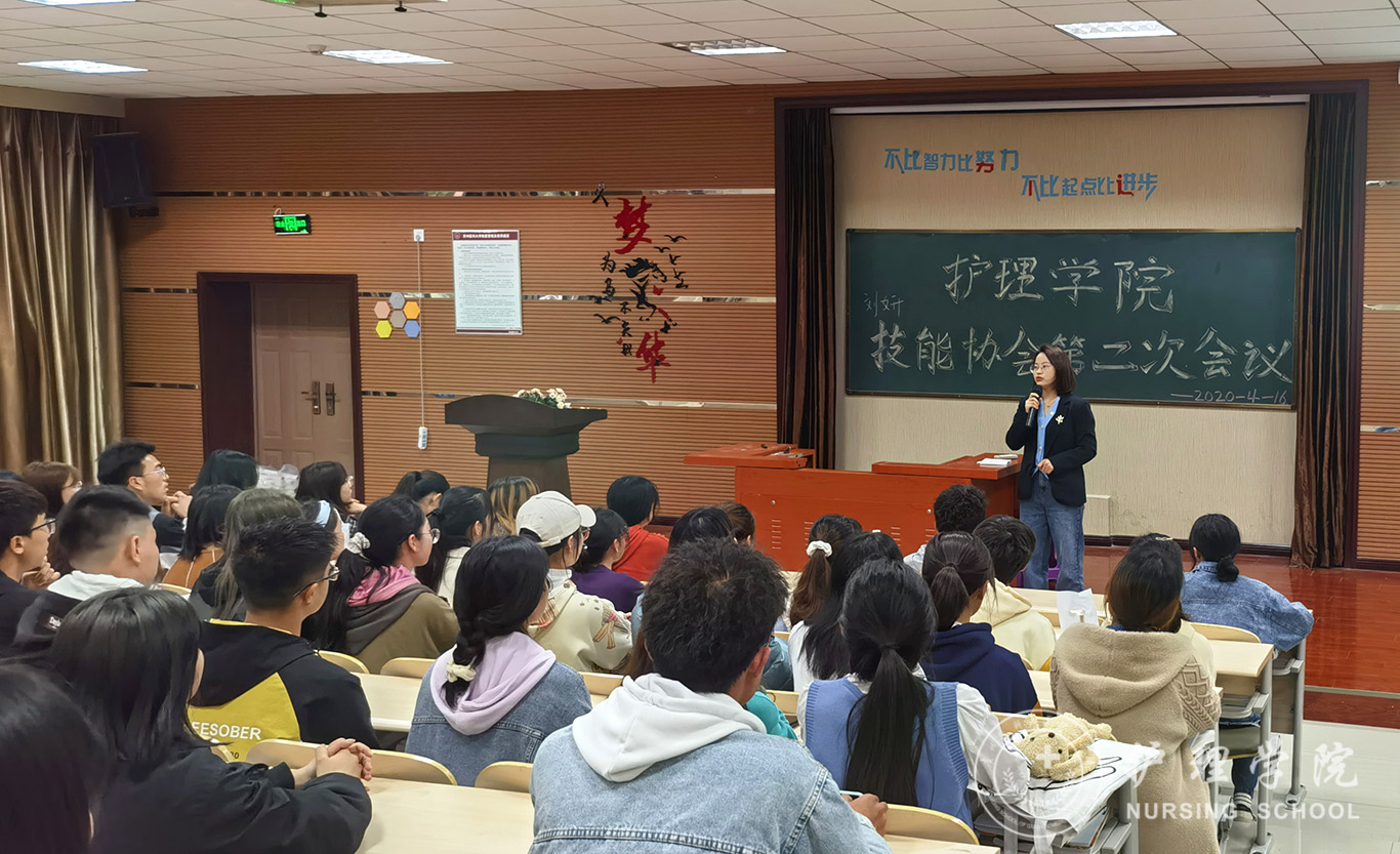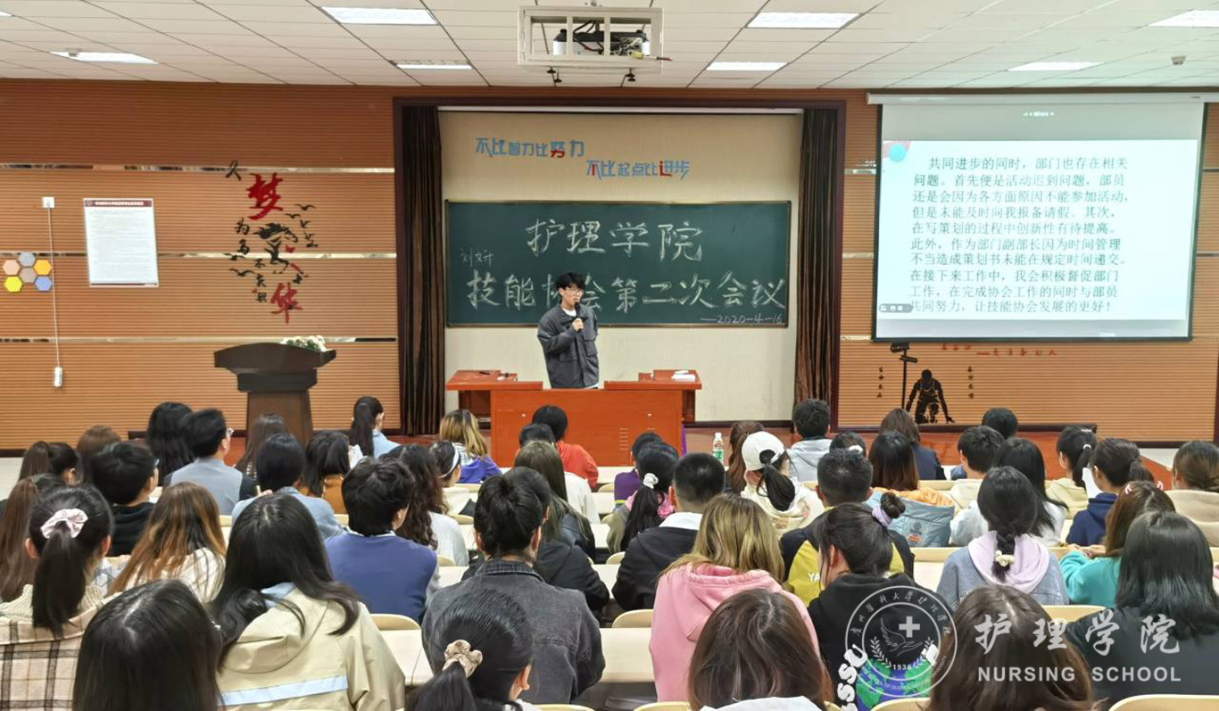 4月16日,为增强协会成员的凝聚力,促进协会的整体发展,伟德官网bv1946护理技能协会于百川楼1101教室召开了本学期第二次例会,本次会议由副会长胡锦久主持,辅导员刘妍及协会全体成员参会。