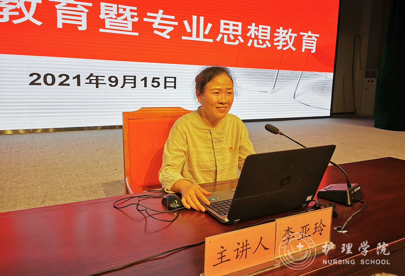 接下来,李亚玲对新生进行专业思想教育,从公司历史沿革、团队建设、课程设置三方面为在座同学介绍了bevictor伟德官网的发展背景及专业前景,她希望同学们踏进校园的那一刻起就要立鸿鹄之志,志存高远,做一个既有思想深度又有视野广度,既有社会责任感,又有家国情怀和使命担当的贵医护理人。