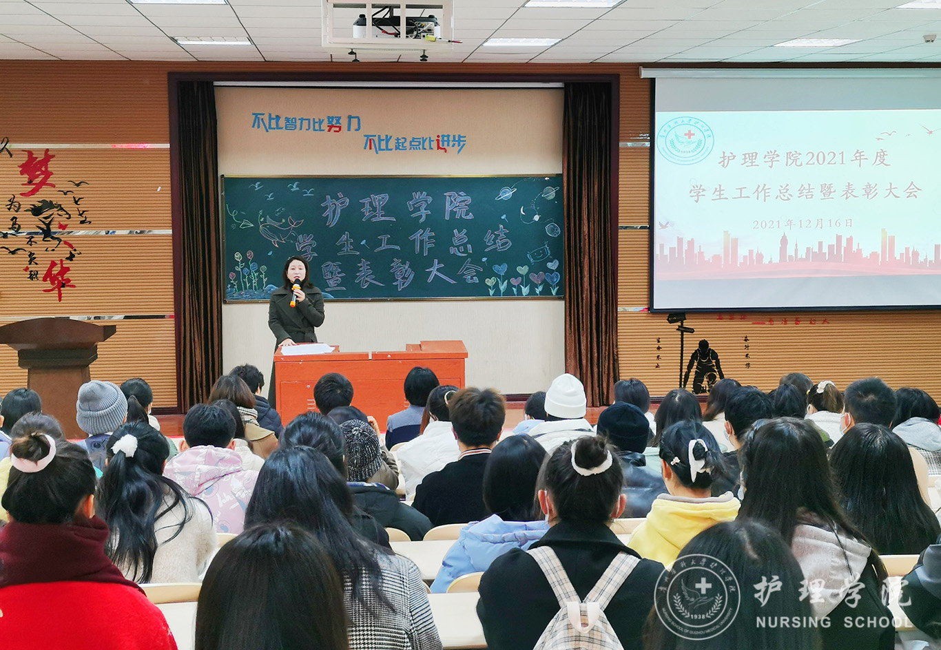 本次大会共有五项议程。首先,副处级组织员张黎作2021年员工工作总结报告,她从抓牢思想建设、抓好团学工作、抓严员工管理、抓实专项工作、创新校园文化活动、助力疫情防控等六个方面总结了2021年度公司员工工作开展情况。接下来,副经理王秀红宣读了先进集体和优秀个人获奖名单。紧接着,助产学2020级肖春同学代表全体员工发言:她结合自己的学习和援遵抗疫经历,分享了这一年的收获与感受,号召大家要勇担时代使命,做新时代的追梦人。