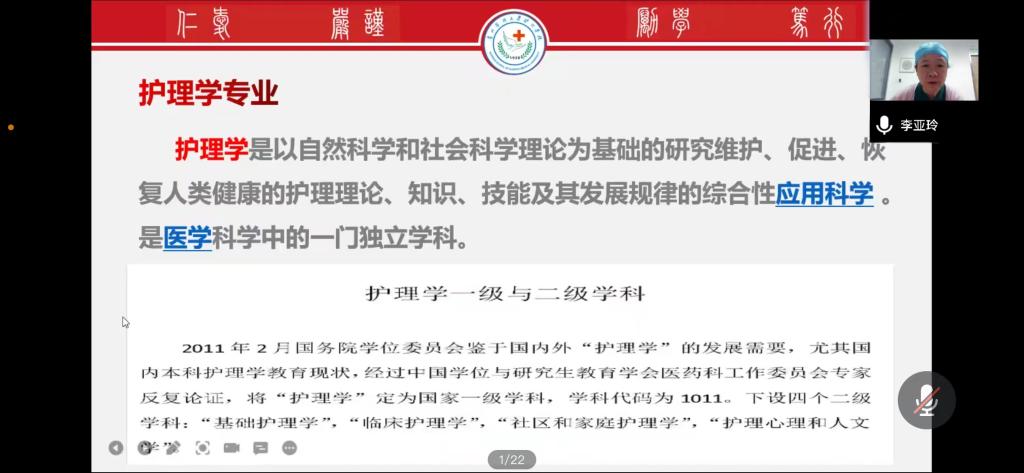 接下来,李亚玲对新生进行专业思想教育,从公司历史沿革、团队建设、专业介绍三方面为同学门介绍了bevictor伟德官网的发展背景及专业前景。她希望同学们进入大公司园的那一刻就要立鸿鹄之志,志存高远,成为一个既有思想深度又有视野广度,既有社会责任感又有家国情怀和使命担当的贵医护理人。