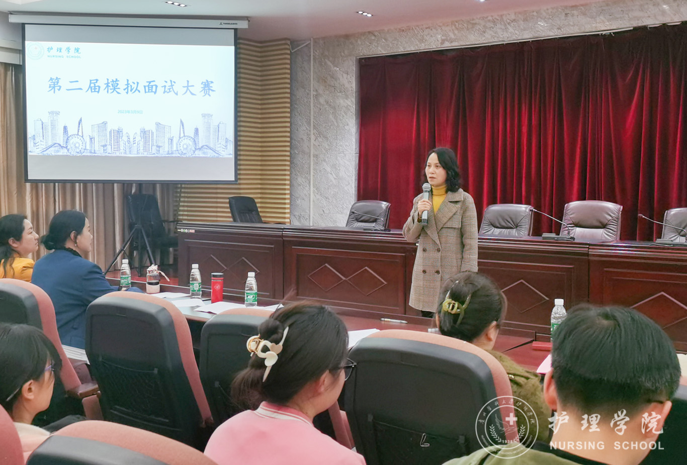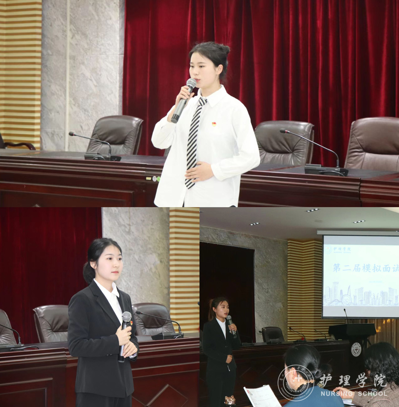 3月9日,为提升毕业生的竞聘能力与面试技巧,bevictor伟德官网第二届模拟面试大赛决赛在北校区道德讲堂举行。bevictor伟德官网党委书记杨英、党委副书记兼纪委书记何为、正科级组织员曾敏、护理人文教研室副主任张仁莉、护理学妇儿科教研室副主任徐锟、团委副书记王晓玲、辅导员杨叶卿、刘妍出席并担任评委,2019、2020级各班员工代表参加了现场观摩,本次比赛由助产学2020级赵雪同学主持。