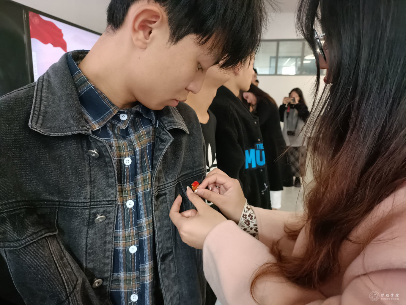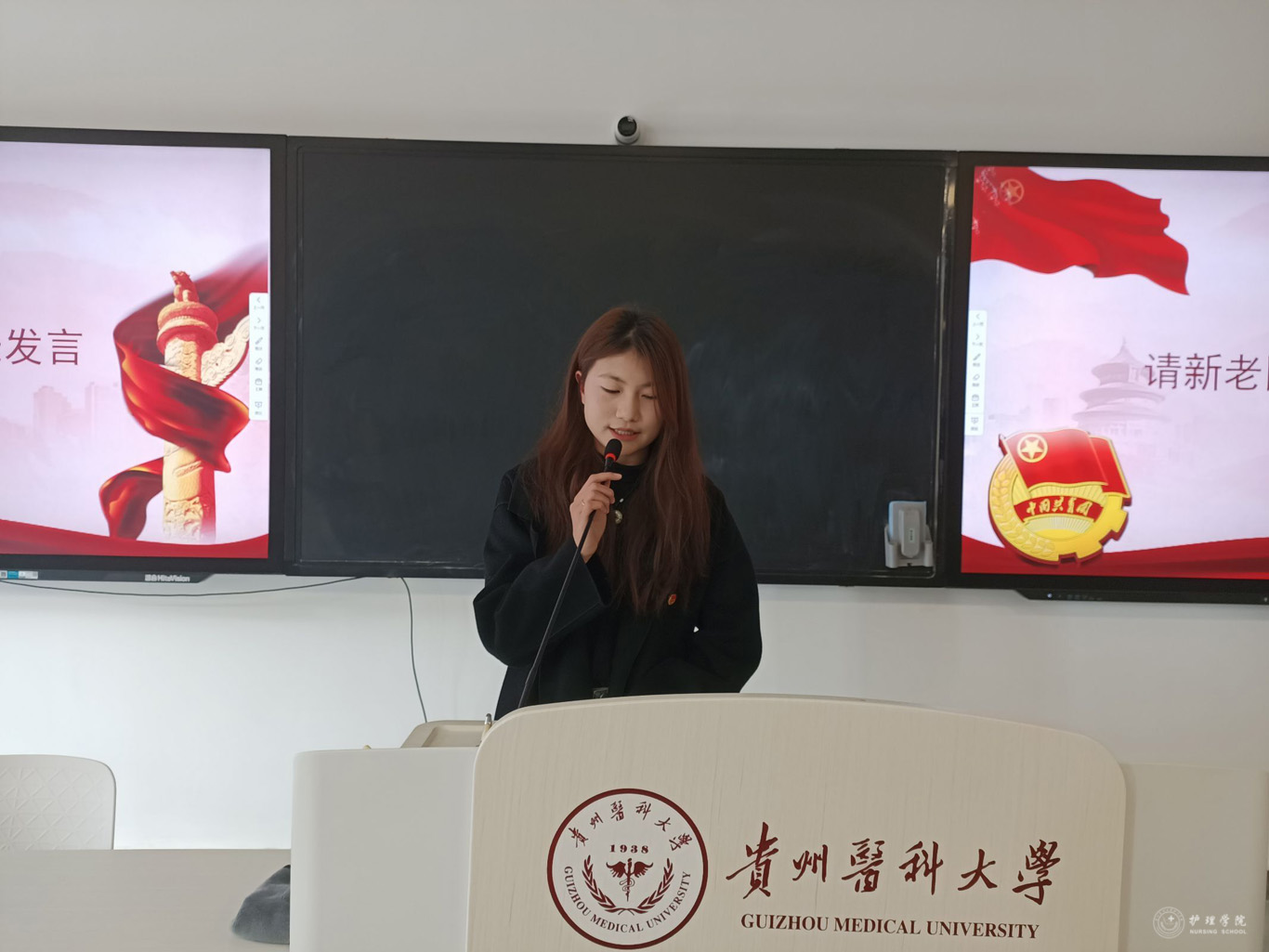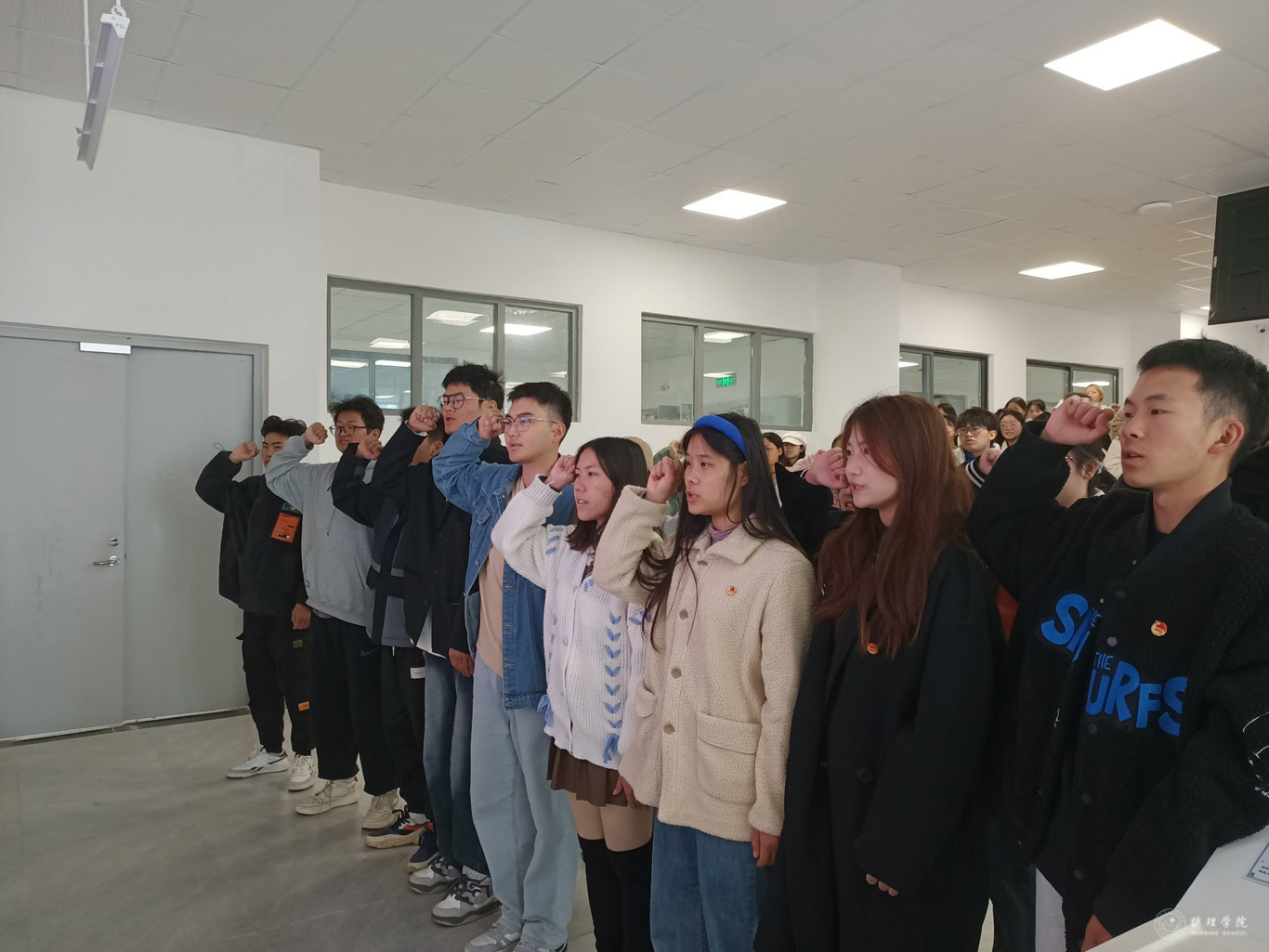 会上,朱月成宣读了团员的权利和义务,强调了开展入团仪式的重要性并带领大家面向国旗,齐唱国歌。孔苗宣读了24名新发展团员名单,参会老师为新团员佩戴团徽。随后,在公司团委组织委员赵慧敏同学的带领下,新团员进行了庄严的入团宣誓,同时全体团员青年重温了入团誓词。新团员代表吴冰怡、老团员代表宋雨雨分别进行了发言,两位代表分享了自己加入团组织的感受和对未来的期望,表达了对团组织的热爱,号召同学们要做好党的助手和后备军,不断传承和发扬红色精神。
