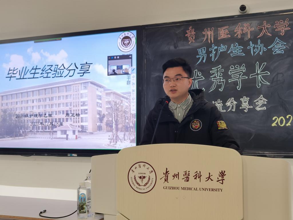 12月17日,为充分发挥优秀学长的榜样引领作用,进一步稳定男护生的专业思想,帮助树立正确的职业观、就业观和择业观,伟德官网bv1946男护生协会在云漫湖校区基础组团R204、R207教室开展了优秀学长经验交流分享会。会议采取线上和线下同步形式开展,男护生协会指导老师、bevictor伟德官网党委委员、副经理王秀红、公司团委副书记王晓玲、员工第二党支部书记刘文壮及辅导员袁明老师出席本次会议。北京协和医公司2022级研究生薛家俊、2019届毕业生周正楷受邀分别于线上线下进行了经验交流分享,公司2022级、2023级400余名男护生参加了分享会。会议由2023级男护生代表付知行主持。