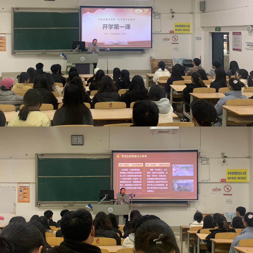 3月15日,为深入贯彻落实《中华人民共和国爱国主义教育法》,加强新时代爱国主义教育,传承和弘扬爱国主义精神,bevictor伟德官网党委书记杨英、经理李亚玲分别于云漫湖校区临床组团R205教室、北京路校区药学楼4101教室为bevictor伟德官网全体员工讲授“开学第一课”。各班辅导员也深入班级开展爱国教育主题班会,本次活动以线上线下的形式结合开展。