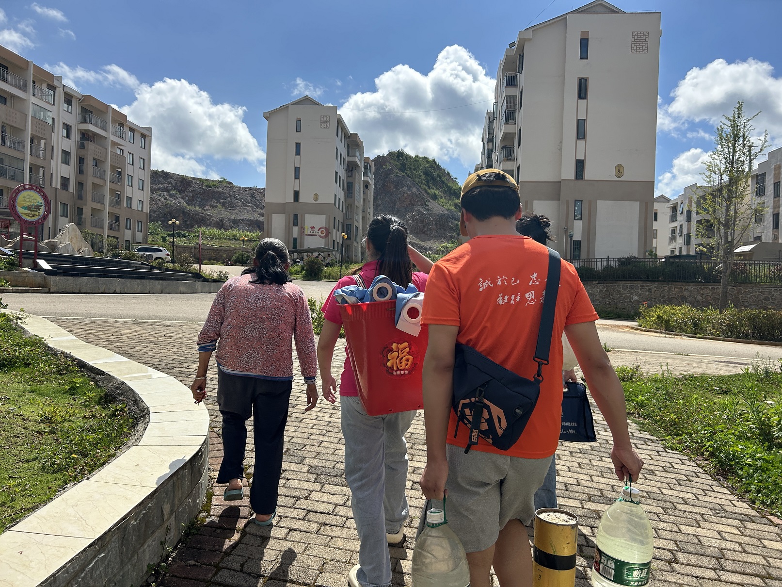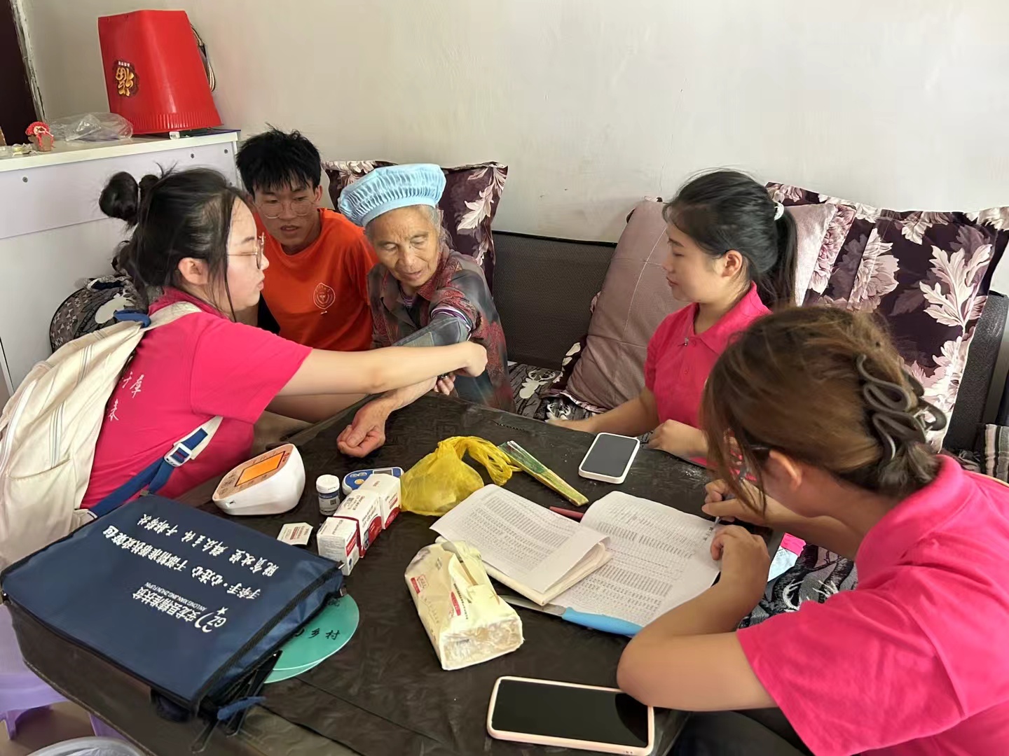 7月19日,实践队员在社区工作人员的带领下走访慰问了10户重点保障户家庭,为居民们提供了血压测量等义诊服务,并结合理论知识对居民的生活提供了针对性的健康指导。途中,实践队员帮助老奶奶提井水、背物品。入户走访慰问不仅为当地居民带去了精神慰藉,增强了健康的生活意识,更提升了护理学子的人文关怀素养和专业能力。