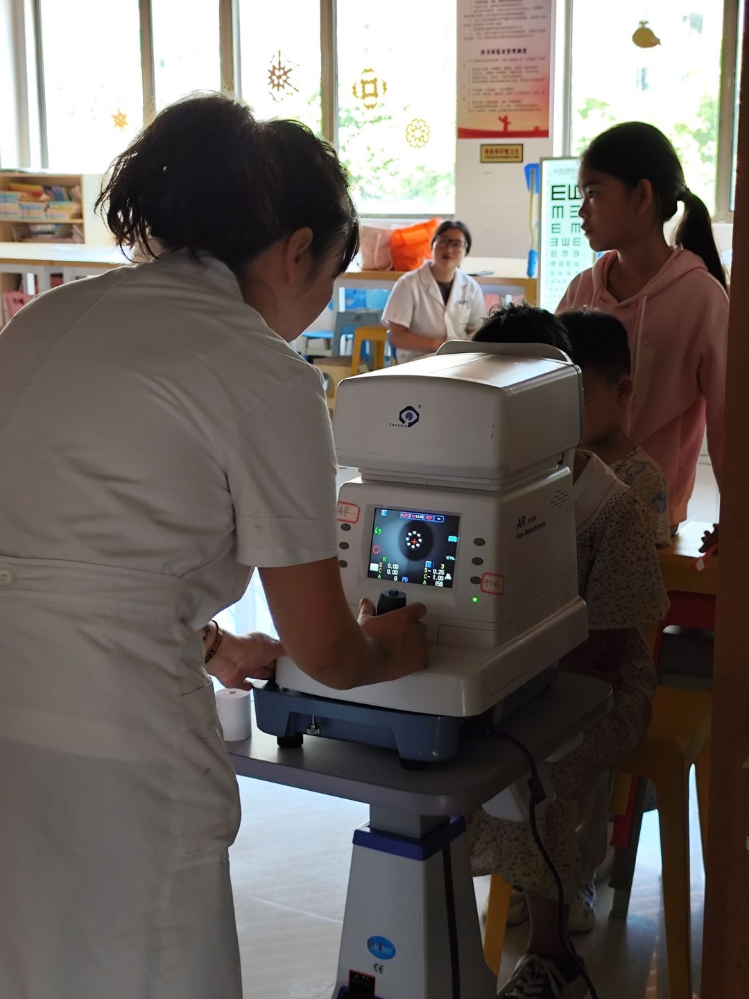 7月22日,实践队联合当地眼镜店共同在蘑菇小镇党委儿童活动中心举办了防近视宣讲活动,为当地青少年提供专业的视力检测与验光服务。在“护眼”小课堂上,队员王正参强调了保护视力的重要性,并详细地讲解了预防近视的科学方法。随后,实践队对当地青少年进行了视力检测,记录视力异常情况,并为其提供健康正确的用眼指导建议。活动不仅普及了近视防控知识,还增强了青少年的爱眼护眼意识,为他们的健康成长奠定了坚实基础。