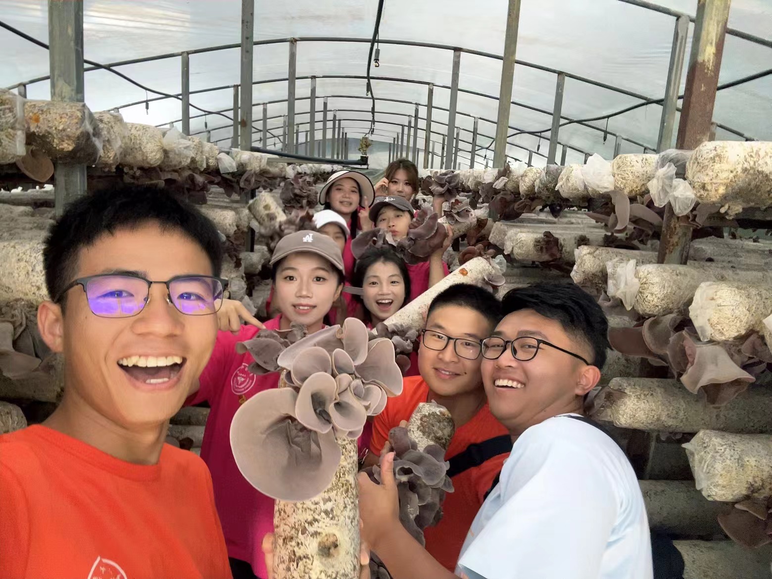 7月21日,实践队员在蘑菇基地工作人员的带领下到蘑菇生产基地参观学习,队员们先是认真地学习了菌棒的生产、培养、菌棒出菇期管理、判断可采收与否以及菌菇品类划分等生产知识,接着在工作人员的指导下体验了香菇和木耳的采摘。活动过程中,实践队借助线上直播的方式同步宣传蘑菇产业,积极与直播间的观众互动,宣讲蘑菇的生产知识和食用价值,为当地农产品的销售贡献了绵薄之力。