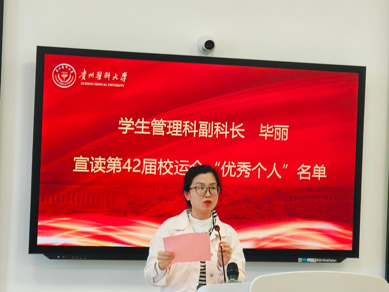 随后,毕丽宣读了伟德官网bv1946第42届春季运动会院级“优秀个人”表彰名单,出席大会的各位老师为同学们颁发纪念品。