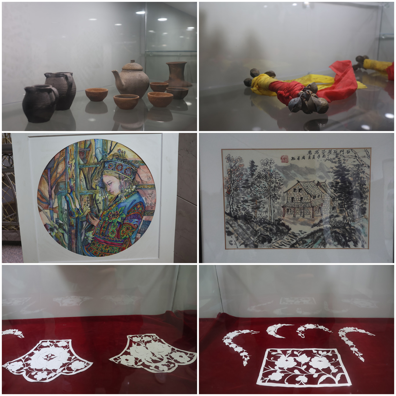 踏入威宁文化馆,队员余星雨化身“讲解员”,从文化馆的历史沿革谈到国家级非遗“撮泰吉”的神秘面具、火把节的熊熊烈焰、四铜鼓舞的铿锵鼓点,把抽象的文化符号还原成可触可感的呼吸与心跳。随后,队长陈瑞接过“接力棒”,细数着展柜内的土陶银饰,艳丽多彩的彝族彩绣、回族素锦,以及那带着神秘色彩的古老面具。