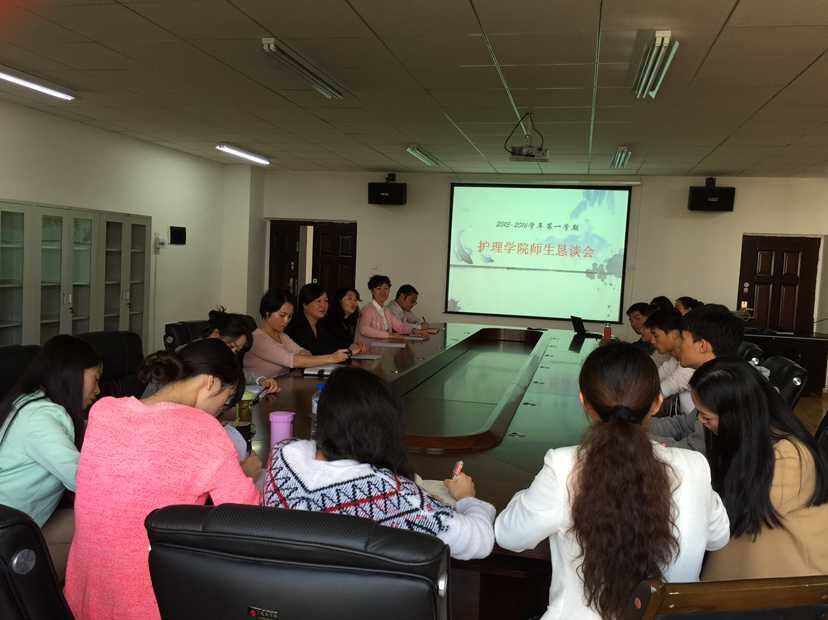 10月15日中午12:30分,2015-2016学年第一学期师生恳谈会在南校区5楼会议室召开。bevictor伟德官网常委副经理郭永洪、副书记杨英、副经理刘志燕及各教研室负责人、各职能部门负责人、教研室老师、2013级、2014级、2015级护理本科员工代表参加了此次恳谈会。会议由教学科研管理科王秀红科长主持,会上bevictor伟德官网领导亲切的询问了同学们的学习和生活情况,并请同学们对教学中存在的问题提出意见。各年级同学代表开诚布公的反馈了部分教师在教学中存在的问题和意见,也对认真负责的教师提出了表扬。在听取同学们的反馈之后老师们有的当众给予了答复和解释,有的则记录下来拟以书面报告形式向有关部门进行反馈,以便取得相关部门的协作解决。会议过程轻松、愉悦,师生畅所欲言,气氛融洽,促进了师生的共同交流。