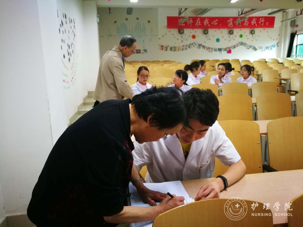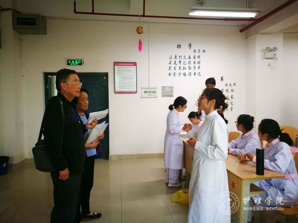 最后专家组到公司4401、4301等教室对护理学2014级专升本乙班的《护理临床技能实训》教学进行了督查,在现场专家们分别与带教老师进行交谈,了解分组及相关教学要求情况,并与同学们进行单独交流,了解同学们的学习情况及收集教学意见。